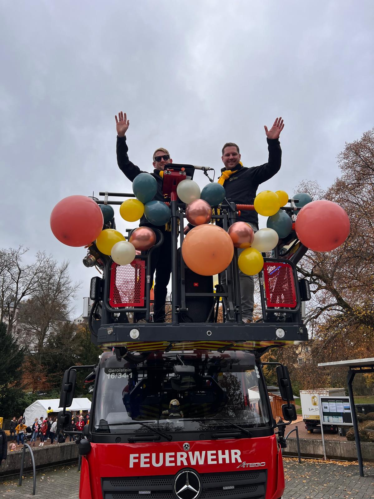 Nur kurz währt ein wehmütiger Blick zurück: Die Session des Dreigestirns mit Prinz Frank I. (Frank Kalmes), Bauer Karsten (Karsten Eckhardt) und Jungfrau Joana (Joachim Bach) neigt sich dem Ende zu. Schon kündigt sich der künftige Prinz mit Adjudant an. Das gab es hier noch nie: Unübersehbar, in schwindelerregender Höhe und mit dem mit PS-stärksten Flitzer, den Gerolstein zu bieten hat, reist er zusammen mit seinem Adjutanten an. Die Tollität in spe, Daniel Krämer und sein Adju in spe Michael Baillivet stehen oben auf der Drehleiter des Feuerwehrfahrzeugs, begleitet von "Tatütata" und Blaulicht. Ein wahrhaftig gelungener Auftritt - alle müssen zu ihnen aufschauen!