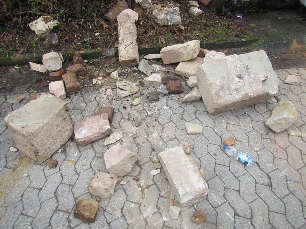 Am vergangenen Samstag, 27. Januar, gegen 10 Uhr meldete ein Bürger, dass am Ende der Klappergasse kurz vor dem Eingang zum Panoramaweg mehrere Steine vom Hang herunter gerollt seien. Die Stelle befinde sich auf Höhe der Hausnummer 21. An Ort und Stelle stellte die Polizei fest, dass sich das Erdreich oberhalb der Mauer zur Kauzenburg aufgrund der starken Regenfälle gelöst hatte. Dadurch rollten mehrere teilweise sehr massive Steine den Abhang herunter. Die größten Steine hatten eine Größe von ca. 1m x 0,6m x 0,4 m und ein Gewicht von ca. 100 Kilogramm. Durch den Steinschlag wurde glücklicherweise niemand verletzt. Lediglich ein geparkter Roller wurde beschädigt. Die Steine wurden durch hilfsbereite Anwohner und die Streife zur Seite gerollt und die Fahrzeuge aus dem Gefahrenbereich entfernt. Der Bauhof wurde beauftragt, die betreffende Stelle abzusichern. Foto: Polizei Rheinland-Pfalz