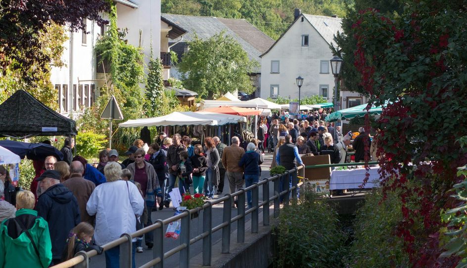 Oldtimer und MUNGA- und UNIMOG- Liebhaber kommen auch auf ihre Kosten. Jeder der mit seinem Gefährt an der Ausstellung teilnimmt erhält eine Urkunde und Verzehrbons. Die Zahl der Marktstände steigt jedes Jahr an. Der Jubiläumsmarkt bietet wieder Köstliches aus Garten, Küche und Keller. Leckere Obsterzeugnisse und delikate Würste sind im Angebot. Dazu kommen Käsespezialitäten und heimmische Wildprodukte. Die Brennerei im Ort bietet eine große Auswahl an Edelbränden und die Schweinschieder Bäckerei hält neben anderen Backwaren das bekannte Grumbeerebrot bereit. Nicht zu vergessen die braune Knolle. Kartoffeln zum Einkellern direkt vom Erzeuger. Handarbeiten und Tischwäsche, Basteleien und Spielzeug gibt es an den Ständen. Es heißt also Riechen, Schmecken, Fühlen, Sehen und Hören. Für den Hörgenuss sorgt eine bekannte Musikkapelle aus der Verbandsgemeinde. Im Gemeindehaus lockt eine herrliche Kuchentafel und Kaffee für nette Plaudereien und Entspannung. Jede Landfrau hat ihr eigenes Rezept für klassische Torten und Gebäck. So ein Markttag macht auch Hunger und Durst nach Deftigem. Die Landfrauen haben sich wieder Kartoffelspezialitäten ausgedacht und sind bestens vorbereitet für den enormen Ansturm auf Pfannkuchen und Grumbeeresopp. Die Männer und Initiatoren vom Stammtisch bieten gekühlte Getränke an - zünftiges Bier und auch die Weinfreunde können sich laben. Für die jungen Gäste gibt es Mitmachangebote, Ponyreiten und eine Riesenhüpfburg.