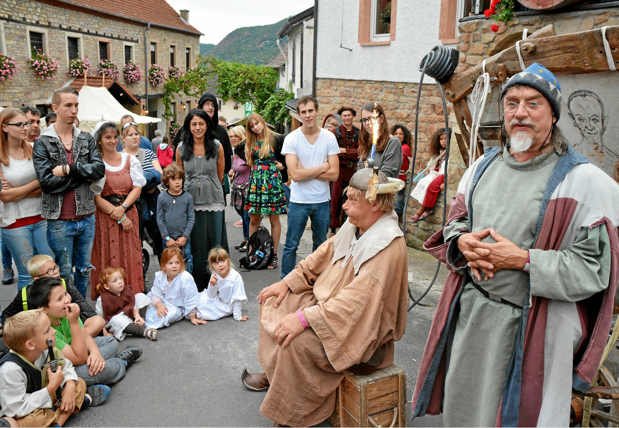 An allen Tagen wird Unterhaltung für Groß und Klein mit reichlich Gaukelei, Musik und Tanz auf allen Plätzen, Gassen und Tavernen des Marktgeländes geboten. Bader, Wippdrechsler, Holzbildhauer, Wachsgießer, Gold- und Hufschmiede, Salzsieder, Korbflechter u. v. m. bieten ihre Dienste an oder geben Einblick in ihr Handwerk. Ein Dutzend mittelalterliche Musikgruppen, Spielleute und Gaukler ziehen an allen Tagen durch den historischen Ortskern oder spielen auf der Bühne auf. Märchenerzähler und Bogenschützen lassen Kinderaugen strahlen. Der Festumzug am Samstag- und Sonntagnachmittag, der Wettstreit der Sackpfeifen u.v.m. locken täglich Tausende in den romantischen Naheort.