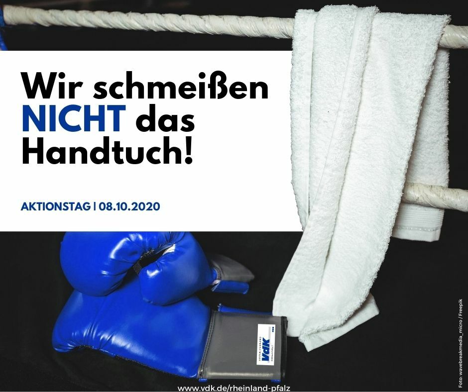 „Die Probleme und Nöte von Pflegebedürftigen und ihren Angehörigen finden zu wenig öffentliche Beachtung“, kritisiert Erich Menger Ortsverbandsvorsitzender, Bad Münster am Stein-Ebernburg. "Das möchten wir als VdK ändern." Der VdK fordert mehr Wertschätzung für pflegende Angehörige, eine bessere Informationen über regionale Pflegeangebote durch Pflegekassen und Pflegestützpunkte, mehr individuelle Pflegleistungen, mehr bezahlbare und unbürokratische Entlastungsangebote und den Ausbau von Angeboten für Kurzzeit- und Tagespflege. "Mit den weißen Handtüchern am Aktionstag möchten wir allen zeigen: Häusliche Pflege ist ein Riesen-Thema in Rheinland-Pfalz! Und je mehr Menschen das sehen, desto höher sind die Chancen, dass sich etwas ändert. Deshalb müssen wir jetzt handeln“, so Menger. Wer mitmacht, kann zusätzlich das Aktions-Motto ins Fenster hängen: „Wir schmeißen NICHT das Handtuch! #Pflegezuhause“. Das Plakat kann man kostenlos auf der VdK-Internetseite herunterladen, und zwar hier: www.vdk.de/permalink/80318