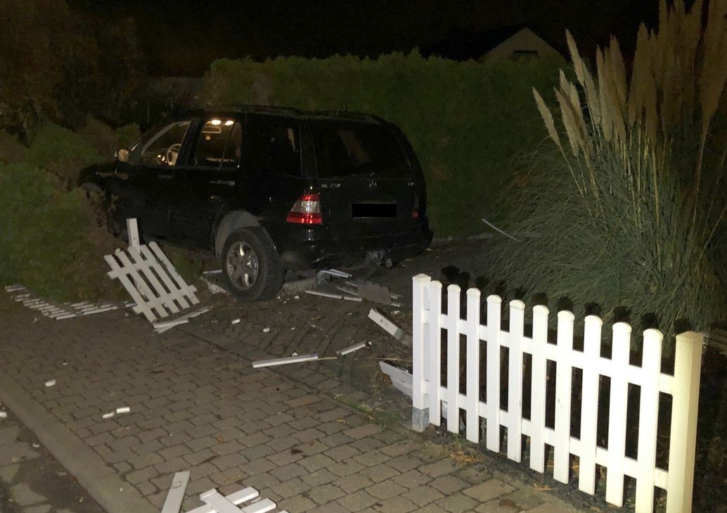 Am Sonntag, 28. November, kam es kurz nach Mitternacht zu einem Verkehrsunfall in der Weidenstraße in Langenlonsheim. Hierbei befuhr ein 25-jähriger Mercedes-Fahrer Die Weidenstraße aus Richtung Bundesstraße 48 in Fahrtrichtung Naheweinstraße. Vermutlich aufgrund der Alkoholisierung kam er nach links von der Fahrbahn ab und kollidierte mit einem dort geparkten Audi. Dadurch kam er wenig später nach rechts von der Fahrbahn ab, durchbrach einen Gartenzaun und endete schließlich im Vorgarten eines dortigen Anwesens. Der Fahrer flüchtete im Anschluss fußläufig in Richtung Naheweinstraße. Dank eines aufmerksamen Zeugen konnte er dabei beobachtet werden, sodass die Beamten der Polizeiinspektion Bad Kreuznach den Fahrer kurz darauf antreffen konnten. Der kurze Hosen tragende Fahrer (bei Temperaturen um den Gefrierpunkt) beatmete das Atemalkoholgerät mit 1,89 Promille, sodass ihm eine Blutprobe entnommen wurde. Gegen ihn werden nun mehrere Strafverfahren eingeleitet. Die Beamten schätzen den Gesamtschaden auf ca. 11.000 Euro. Glücklicherweise wurde niemand verletzt.