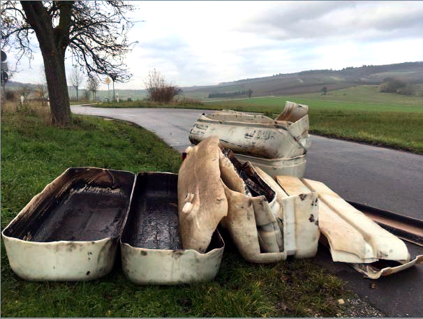 Aufgeschnittene Öltanks in die Natur geschmissen