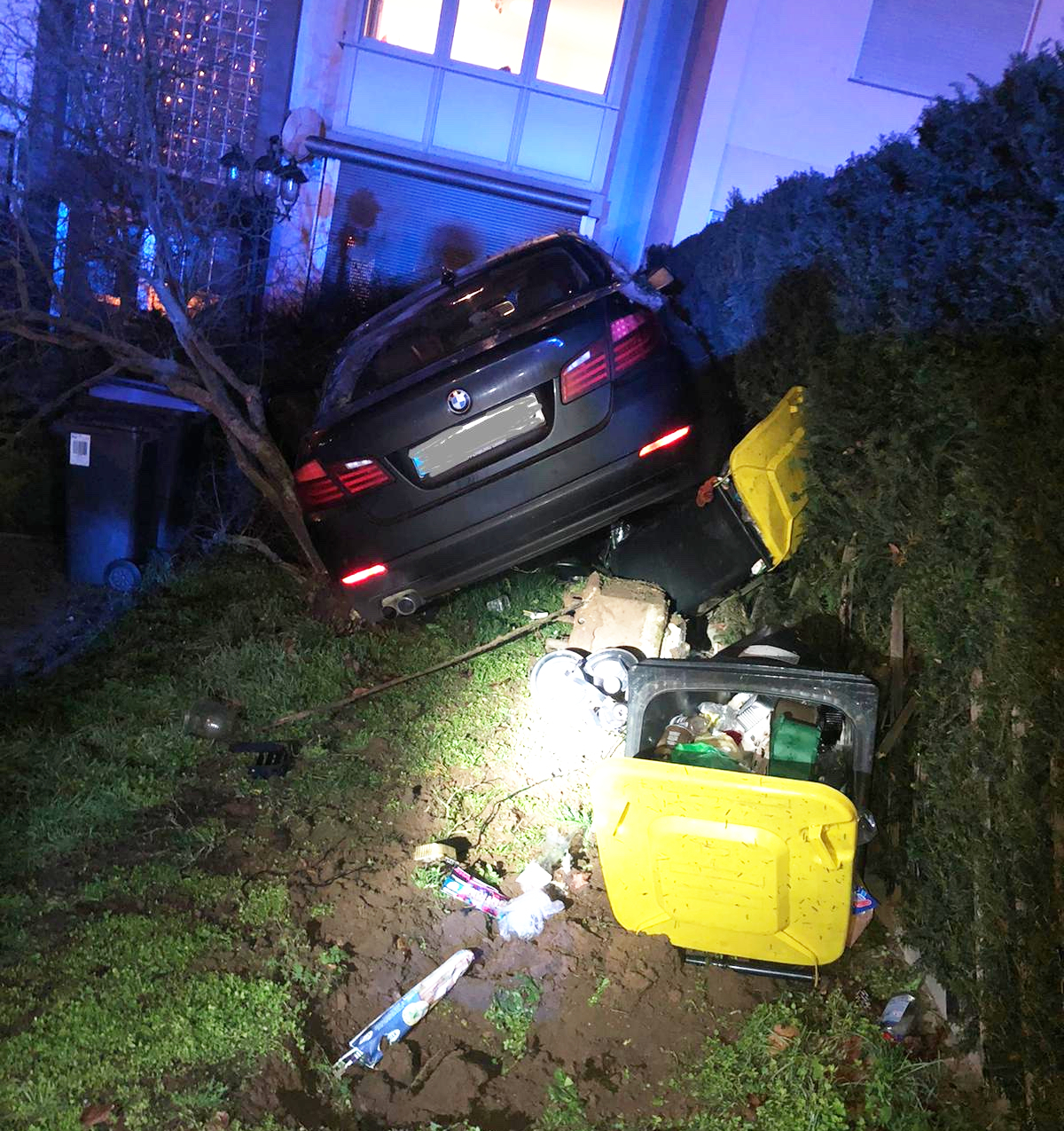 Kurz vor dem "missglückten" Abbiegevorgang befuhr die 33-jährige Fahrzeugführerin die Landstraße 412 aus Hackenheim in Richtung Bad Kreuznach. Als sie nach rechts in die Richard-Wagner-Straße abbog, verlor sie die Polizei zufolge aufgrund nicht angepasster Geschwindigkeit die Kontrolle über ihr Fahrzeug. Sie kam nach links von der Fahrbahn ab und geriet auf das dortige Hausgrundstück. Dabei kollidierte sie mit einem Baum, mehreren Mülltonnen, einem Holzzaun und einer Hecke. Es entstand ein Sachschaden in einem niedrigen fünfstelligen Bereich. Verletzt wurde niemand. Die angerückten Wehrleute des Löschbezirks Süd der Feuerwehr leuchteten die Einsatzstelle für die Unfallaufnahme der Polizei aus. Das Fahrzeug musste abgeschleppt werden. Die Einsatzkräfte konnten nach etwa 30 Minuten wieder abrücken. Gerade als die Feuerwehr-Kräfte die Wache erreichten, folgte schon der nächste Einsatz. Unweit des Gerätehauses in der Mannheimer Straße war eine Wohnungstür zu öffnen, weil eine Frau in einer Notlage vermutet wurde. Die Tür wurde geöffnet und die Wohnung wurde durchsucht, aber die Mieterin war nicht aufzufinden. Wie sich kurz darauf herausstellte, hatte sie ihren Hund allein in der Wohnung gelassen gelassen, weil sie schnell zu einem Bekannten musste. Dies hatte der Anrufer, der den Notruf absetzte, nicht gewusst. Nachdem ein neuer Schließzylinder in der Tür eingebaut wurde, konnte die heimgekehrte Mieterin ihre neuen Schlüssel in Empfang nehmen. Der Einsatz war nach 30 Minuten beendet.