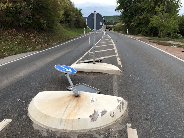 Ein stark alkoholisierter Autofahrer hat am vergangenen Samstag, 5. Oktober, gegen 18 Uhr eine Verkehrsinsel zwischen Neu-Bamberg und Frei-Laubersheim mit seinem Fahrzeug überrollt.