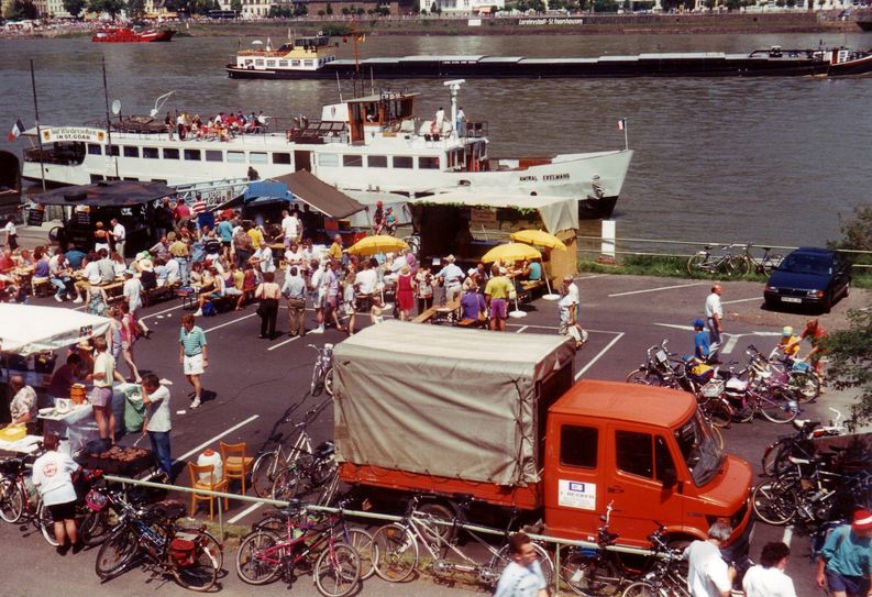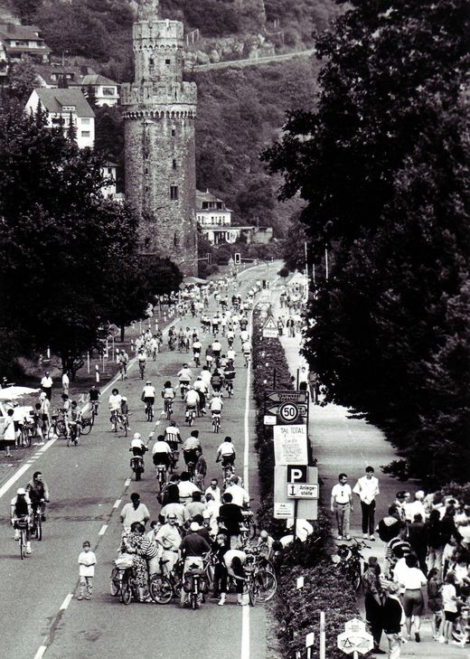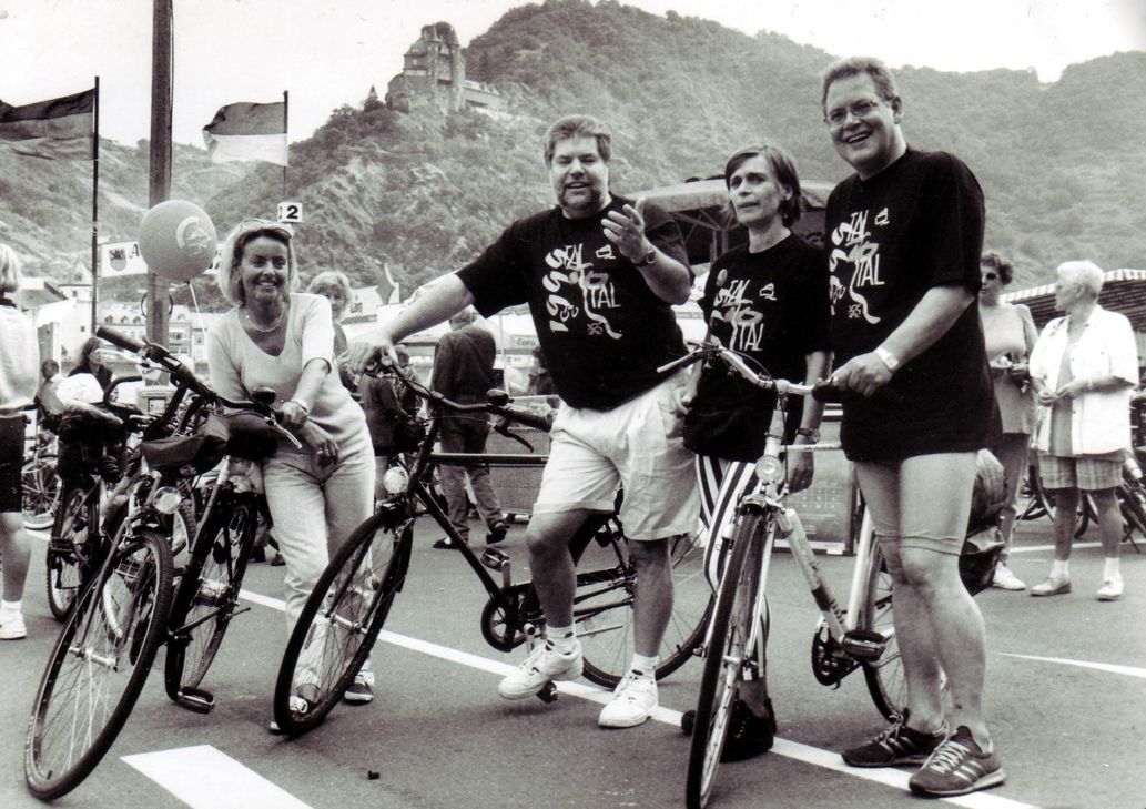 Von 10 bis 18 Uhr kann man auf der B9 von Koblenz bis Bingen und auf der B42 von Lahnstein bis Rüdesheim das Welterbetal ohne Autos genießen. Claudia Schwarz aus St. Goar ist seit dem ersten Event 1992 in die Organisation eingebunden und erinnert sich an die Anfänge. »Ich hätte es damals nie für möglich gehalten, dass eine Bundesstraße für den ganzen Tag gesperrt werden«, erinnert sich Schwarz, Geschäftsführerin der Rhein-Touristik im Tal der Lorelei. Ohne die Initiative der damaligen Landesregierung von Ministerpräsident Rudolf Scharping wäre »Tal toTal« wohl nicht entstanden. »Herr Scharping ist selbst begeisterter Radfahrer und der Ausbau der Radwege stand damals auf der Agenda der SPD. Das Land hat auch von Beginn an die Kosten für die Sperrung übernommen«, sagt Schwarz. »Am Anfang war die Begeisterung und das Engagement noch sehr groß. Es gab viele kreative Ideen«, betont Schwarz. Denn neben den üblichen Merchandise-Artikeln, wie T-Shirts, Mützen oder Uhren gab es in den ersten drei Jahren der Veranstaltung auch die Abfüllung eines »Tal toTal«-Weins: 2 000 Flaschen Riesling pro Jahr. Die kreative Seite zeigte sich unter anderem beim Lied »Im Tal toTal«, das Uli Valnion und Jürgen Waschke 1994 komponiert haben. Valnion hat das Lied wieder hervorgekramt und wird es bei der Eröffnung in Lahnstein zum Besten geben. Dreier und Scharping gratulieren zum Jubiläum Zur Eröffnung wird in diesem Jahr neben Rudolf Scharping auch Ministerpräsidentin Malu Dreyer vor Ort sein, um persönlich zum 25. Jubiläum zu gratulieren. Damit setzt sie eine Tradition fort: »Zur Eröffnung war bisher immer ein Vertreter der Landesregierung dabei. Oftmals ist es der Ministerpräsident selbst«, so Claudia Schwarz. Allerdings sind die Besucherzahlen rückläufig. In den ersten Jahren konnten bis zu 150 000 Radfahrer am Rhein begrüßt werden. Mittlerweile hat sich die Zahl halbiert. Etwa 70 000 bis 75 000 Radfahrer werden am Sonntag im Mittelrheintal erwartet. Daher haben sich viele Vereine, die durch Stände das Event mitgestalten, zurückgezogen. Auch die Sponsoren sind weniger geworden. Zu Anfang haben sich zahlreiche Unternehmen beteiligt. Der SWR hatte beispielsweise eine Bühne auf der Fähre in St. Goar und auch Nestle war als Sponsor dabei. Denn ganz ohne Sponsoren geht es nicht. Die Kosten für Programm, Werbung und Broschüren sowie die Rettungskräfte müssen die Organisatoren selbst finanzieren. Trotzdem besteht von allen Seiten großes Interesse an der Weiterführung, so dass »Tal toTal« in 25 Jahren das nächste große Jubiläum feiern kann. Weitere Informationen gibt es unter: www.tal-total.de