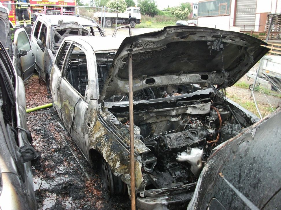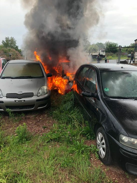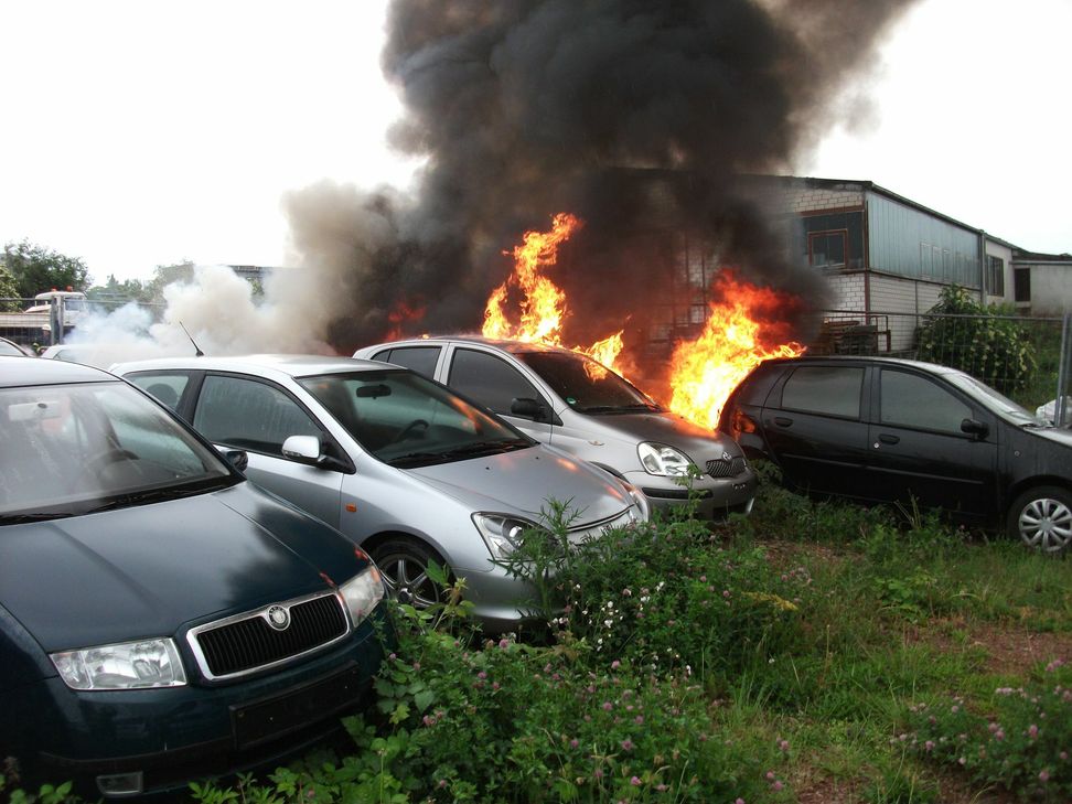 Mehrere Passanten setzten am Sonntag, 20. Mai, gegen 16.30 Uhr einen Notruf ab. Darunter hieß es anfänglich, eine Lagerhalle würde brennen. Weitere Anrufer berichteten von einigen Autos, die auf dem Gelände eines Gebrauchtwagenhändlers in Flammen stehen. Die Rettungsleistelle alarmierte direkt die beiden Löschbezirke Süd und Nord.