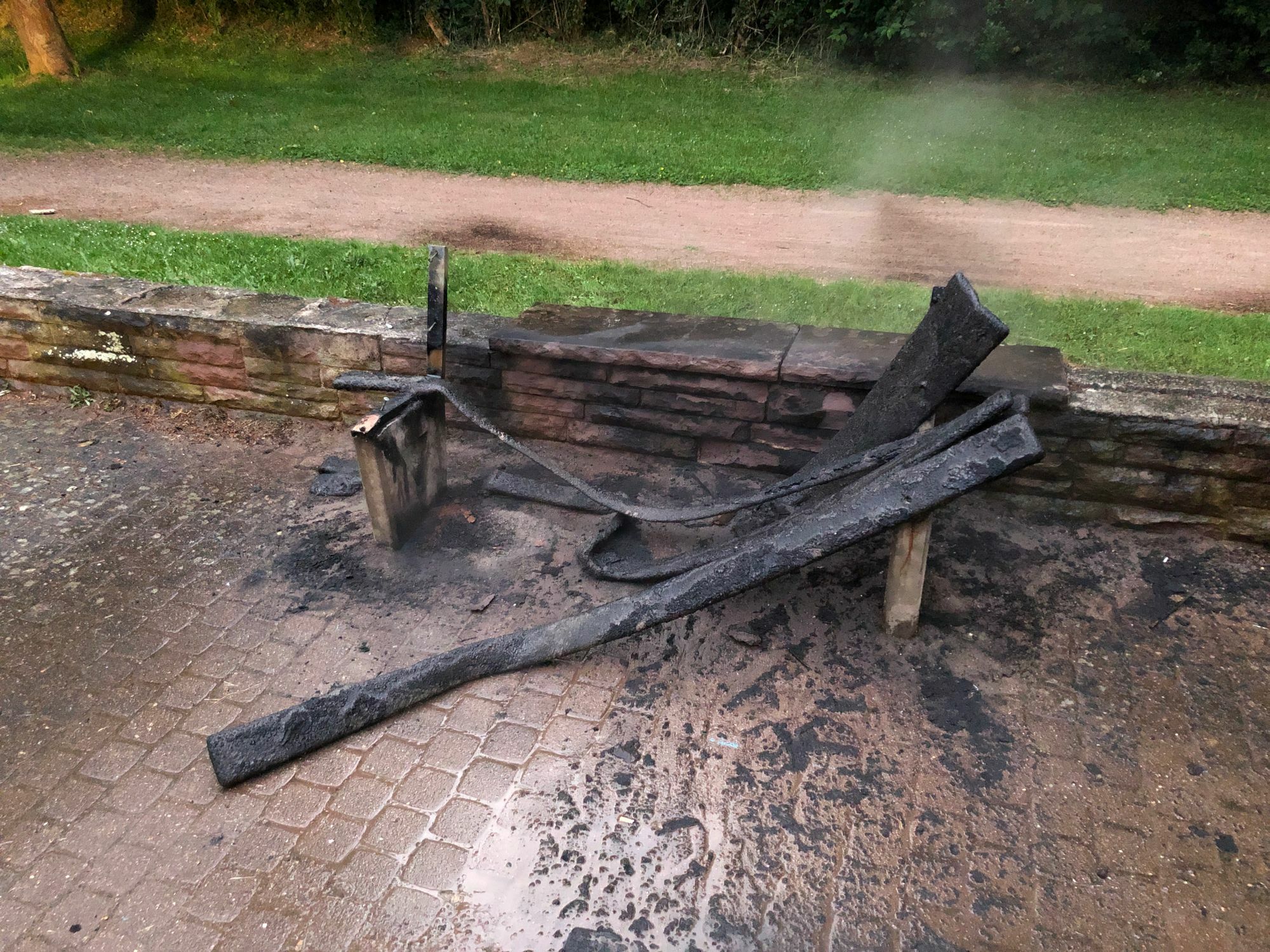 Die Corona-Langeweile treibt bisweilen seltsame Blüten: Unbekannte Täter haben gestern Abend eine Parkbank auf dem Ellerbachspielplatz im Mühlweg in Brand gesetzt.