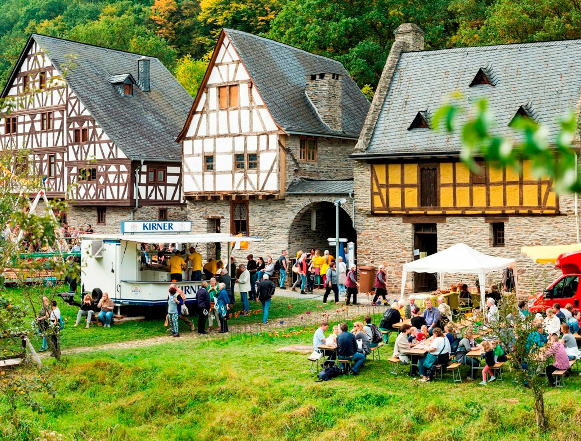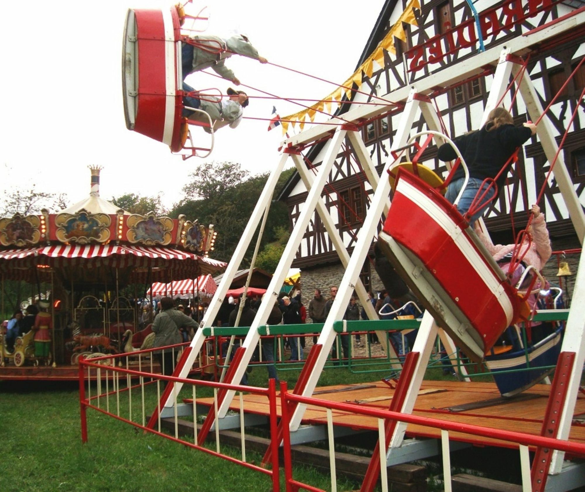 Auf vielfachen Wunsch ist noch einmal das nostalgische Riesenrad aus dem Jahr 1902 von Werner Feldmann vor Ort.Das liebevoll gestaltete Programm lässt kaum Wünsche offen: 100 Aussteller beleben den großen Handwerker- und Bauernmarkt. Es gibt viele schöne Stände mit leckeren Spezialitäten wie Nougat, Mandelgebäck, Gourmet-Marmelade, Chutneys, Knoblauch aus Südfrankreich, Lakritz aus einer Manufaktur in Schweden und verschiedene Aussteller mit Deko-Ideen für Haus und Garten. Die Winzergenossenschaft Rheingrafenberg schenkt frischen Federweißen, Weinschorle und edle Rebensäfte aus. Neu in diesem Jahr ist ein nostalgischer Eisstand mit historisch günstigen Preisen. Dank der Unterstützung durch die Sparkasse Rhein-Nahe können hier nicht nur Kinder leckeres Eis genießen. Der Eisstand befindet sich neben dem Platz für den Kiosk aus Kaiserslautern, der bald seine Reise ins Freilichtmuseum antreten könnte. Dies ist nur möglich, wenn sich viele Interessenten an einer „Crowd-Funding-Finanzierung“ beteiligen: auf www.startnext.com/kiosk-auf-reise gibt es alle Informationen. Auskunft gibt das Museumsteam auch gerne telefonisch unter 06751/855880. Am Museumsfest befindet sich der Stand des Freilichtmuseums neben der bereits abgesteckten Fläche für den Kiosk. Dort können sich die Besucher auch über alle weiteren Projekte des Freilichtmuseums informieren. Gegenüber präsentiert sich das Forstamt Bad Sobernheim mit der rollenden Waldschule, Motorsägenkünstler Boris Beuscher und dem Holzdrechsler Rudolf Becker. Desweiteren wird auch das Motorsägenmuseum aus Lauterecken vor Ort sein. Der Avarella Hof von Tierärztin Alexandra Erbeldinger bietet nahe der Museumsgaststätte Ponyreiten auf ihren Mini-Ponies an. Ganz in der Nähe befindet sich eine weitere Attraktion: zahlreiche viereckige Strohballen laden zum Bauen und Spielen ein. Zudem können alle Hobby-Handwerker die erst kürzlich eingeweihte historische Lehmbaustelle ausprobieren. In den historischen Gebäuden finden zahlreiche Handwerksvorführungen statt. Die Museumsschmiede ist ebenso in Betrieb wie auch der historische Dreschschuppen oder die Museumsmühle. Für die kleinen Besucher gibt es ein Puppentheater.Die neuen Museumsglanrinder Amanda, Amadeus, Liatrix und Lisbeth stehen auf der Festwiese nahe der Trafoturmstation.Ein weiterer Programmhöhepunkt sind die Darstellungen der museumseigenen Projektgruppe „Alltag 1910“. Sie erweckt die Wohn- und Arbeitswelt unserer Vorfahren zum Leben.Besonders vielfältig gestaltet sich auch das musikalische Angebot mit Bands aus der Region. Dabei sein werden die Stadtkapelle Bad Sobernheim, die Bockenauer Dorfmusikanten 1984 e.V. sowie das Blasorchester 1924 Staudernheim e.V., welche alle in der Baugruppe Pfalz-Rheinhessen spielen werden. Nahe der Museumsgaststätte spielt die Band „Sunrise“. In der höher gelegenen Baugruppe Hunsrück- Nahe treten Bernhard Bunn und Begleitung auf, danach spielt der junge Musiker Leon Hermann eigene Improvisationen auf der Gitarre in den Stilrichtungen Rock, Blues und Jazz. Den Abschluss bildet die Gruppe „The Patchworks“, welche Irish Folk präsentiert.Regionale Spezialitäten und Getränke bieten das Team der Museumsgaststätte und die ehrenamtlichen Helfer des Freundeskreises an. Es gibt Spießbraten, Bratwürstchen, Bockwurst im Brötchen, Pommes Frites, „Gequellte“ (Pellkartoffeln) aus dem Kartoffeldämpfer, belegte Brötchen in der historischen Metzgerei sowie ein reichhaltiges Kuchenbuffet im Winterburger Tanzsaal. Die Museumsbäcker bieten im Schul- und Backhaus Brot, Brötchen und andere Leckereien an. Erneut gelten besonders familienfreundliche Preise: Der Museumseintritt beträgt 5,-€ für Erwachsene, Kinder und Jugendliche bis 17 Jahren haben wie immer freien Eintritt. Gerne kann auch der Familienhund angeleint mitgenommen werden. Aufgrund der günstigen Preise können leider keine weiteren Rabatte gewährt werden. Die Fahrgeschäfte und die Schiffsschaukel kosten pro Fahrt für Erwachsene 1,- € sowie 50 Cent für Kinder. Die Jahrmarktsbuden wie Dosenwerfen oder das Glücksrad können kostenfrei ausprobiert werden und Dank der Spenden zahlreicher Sponsoren erhalten die Teilnehmer an diesen Buden sogar kleine Gewinne. Wer mit dem eigenen Auto zum Museumsfest fahren möchte, kann auf dem großen Wiesenparkplatz des Freilichtmuseums sein Fahrzeug abstellen. Die Parkplatzbetreuung wird von der Feuerwehr Monzingen übernommen. Die Parkgebühren in Höhe von 1,50 € pro Fahrzeug werden für die Jugendabteilung der Feuerwehr verwendet. Um Verkehrsproblemen aus dem Weg zu gehen, ist die Anreise per Bahn zu empfehlen. Ab dem Bahnhof Bad Sobernheim können die Besucher den Pendelbus der RNN-Linie 260 zum Freilichtmuseum nutzen. Der genaue Fahrplan befindet sich unter www.rnn.info. Weitere Informationen gibt es telefonisch unter 06751/855880 oder im Internet: www.freilichtmuseum-rlp.de.
