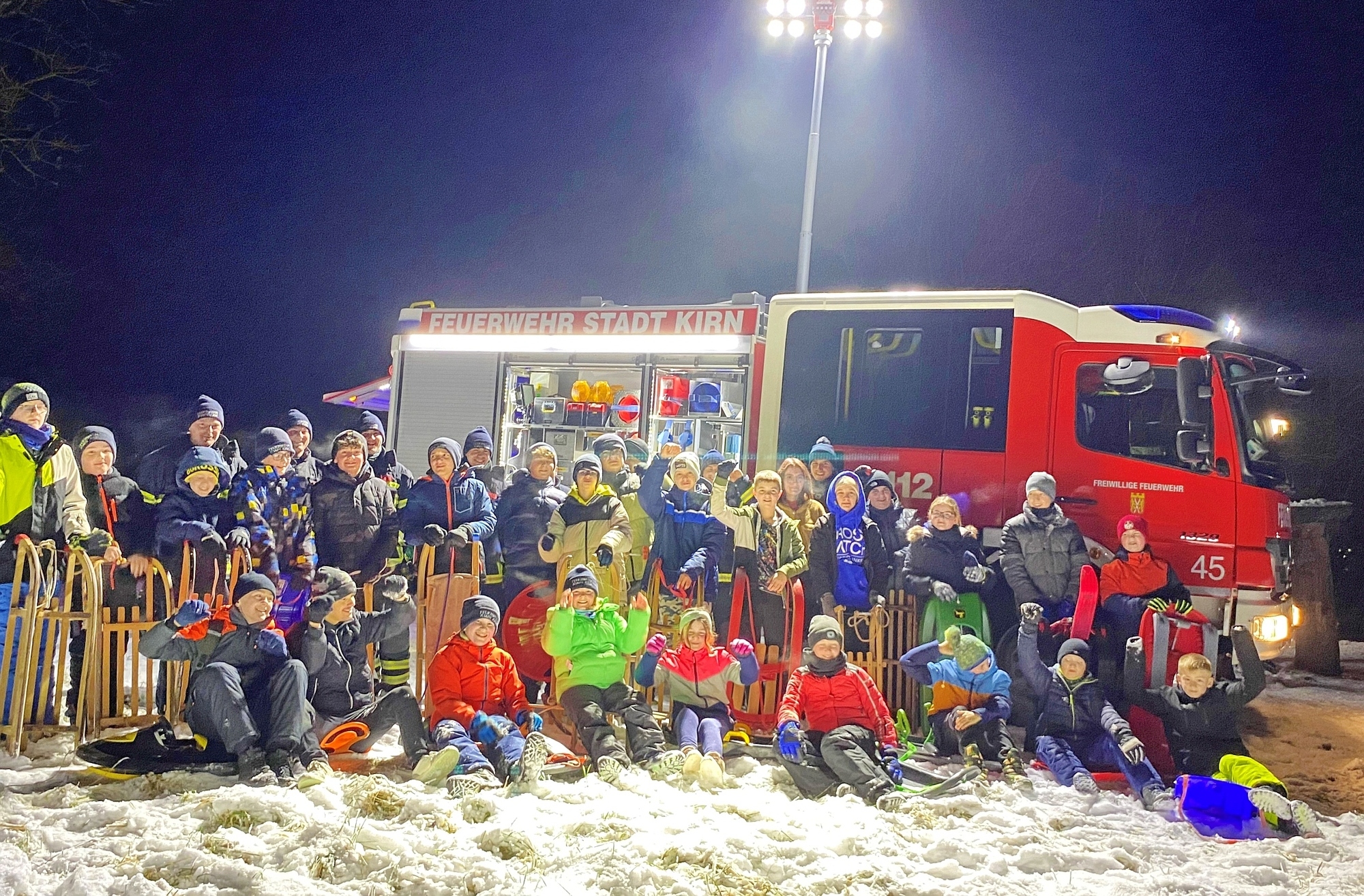 Nicht nur im Unglücksfall stehen die Floriansjünger der Bevölkerung zur Seite, auch bei schönen Ereignissen. Das trifft auf die Floriansjünger aus Kirn zu, die am Freitagabend ihrem Nachwuchs und Kindern aus der Stadt mit einer besonderen Winterfreude begeisterten: nächtliches Rodeln. In der Nahestadt wurde dieses Vergnügen am Kyrburghang, in unmittelbarer Nähe zur großen Panorama-Sitzbank, verwirklicht, der Generationen als Rodelpiste bestens bekannt ist. Für den abendlichen Event, der von 18 bis 20 Uhr für großes Schnee-Treiben sorgte, hatte die Feuerwehr ausreichend Vorbereitungen getroffen. "Vorbereitet wurden das Event relativ kurzfristig, von unseren drei Jugendwarten Christoph und Florian Späth sowie Kilian Stumm", freute sich der Wehrleiter der VG Kirner Land, Marks Späth. Rund 30 Kinder sausten auf der hervorragend ausgeleuchteten Piste Richtung Kirner Altstadt. "Beim Aufbau wurde mit den Kindern das Ausleuchten von Einsatzstellen geübt und besprochen. Letztmals konnten wir 2011 eine ähnliche Aktion machen, damals als Jahresabschlussfeier. Viele der heutigen Betreuer waren damals selbst noch als Kinder in unserer Jugendfeuerwehr dabei".