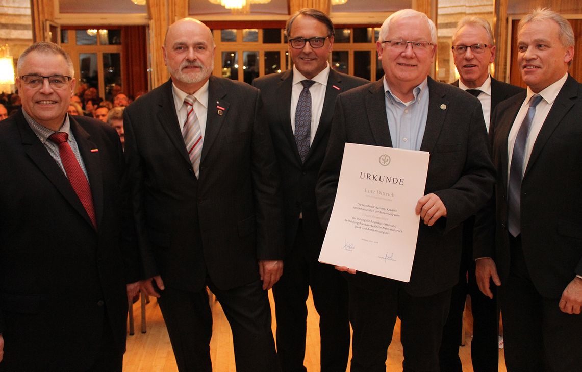 Innungen, Handwerkskammer, Arbeitsagentur und Sponsoren wollen die Nachwuchswerbung in 2019 noch mehr forcieren, damit das heimische Handwerk qualifizierte Fachkräfte ausbilden kann. Nach dem Umbau setzt das Haus des Handwerks einen neuen Schwerpunkt mit der (für die) Berufsorientierung junger Menschen, versprach Kreishandwerksmeister Peter Mumbauer. Als „starkes Zeichen für einen starken Zusammenhalt“ der Handwerksfamilie begrüßte der neue Hauptgeschäftsführer der Handwerkskammer Ralf Hellrich die Handwerksmeister und ihre Gäste aus Politik und Wirtschaft. Zum 23. Neujahrsempfang hatten sich die Innungen aus den Landkreisen Bad Kreuznach, Birkenfeld und Rhein-Hunsrück im wieder einmal vollbesetzten Ovalen Saal des Kurhauses zusammengefunden. Langjährige Meister wurden ebenso geehrt wie der leistungsstarke Berufsnachwuchs. Die Nachwuchswerbung und die Ausbildung von qualifizierten Handwerkern gehörten mit zu den Hauptaufgaben der Kreishandwerkerschaft, betonte Peter Mumbauer. Zurzeit seien im Landkreis Bad Kreuznach 52 freie Ausbildungsstellen, im Landkreis Birkenfeld neun und im Landkreis Rhein-Hunsrück 26. In den kommenden drei Jahren werde die Werbung auch mithilfe von der Sparkassenstiftung der Kreissparkasse Rhein-Hunsrück verstärkt, bedankte sich der Kreishandwerksmeister. Die Wiedereinführung der Meisterpflicht, von der 2004 über 50 Handwerksberufe befreit worden waren, werde auch dazu führen, dass mehr Fachkräfte ausgebildet werden. Fast alle Azubis im Handwerk würden nämlich in Meisterbetrieben ausgebildet, merkte Mumbauer an. Auch Langzeitarbeitslose könnten jetzt in Handwerksbetrieben eine neue Chance finden. Über ein neues Förderprogramm seien bis zu 100 Prozent Lohnkostenzuschüsse möglich. Das gleiche gelte auch für die Weiterbildung, die in vielen Fällen von der Agentur für Arbeit gefördert werden könne. Kreishandwerksmeister Mumbauer forderte die Handwerks-betriebe auf, Kontakt mit der Arbeitsverwaltung und den Jobcentern aufzunehmen. Auch Hauptgeschäftsführer Ralf Hellrich von der Handwerkskammer Koblenz setzte in seiner Ansprache große Hoffnungen in die Wiedereinführung der Meisterpflicht, die laut Koalitionsvertrag jetzt überprüft wird. Dies werde auch die berufliche Bildung aufwerten. Gerade in Realschulen müsste das Handwerk stärker präsent sein und als vollwertige Alternative zur akademischen Bildung gelten, forderte er. Parallel dazu müsse das Ansehen der Handwerksberufe gesellschaftspolitisch aufpoliert werden. Die Gesellschaft müsse auch dafür sorgen, dass die starke Neigung junger Menschen zu akademischen Bildungsgängen korrigiert werde. Die berufliche Orientierung der Jugend sei die Hauptaufgabe, der sich Schulen und Handwerk stellen müsse, so Hellrich.