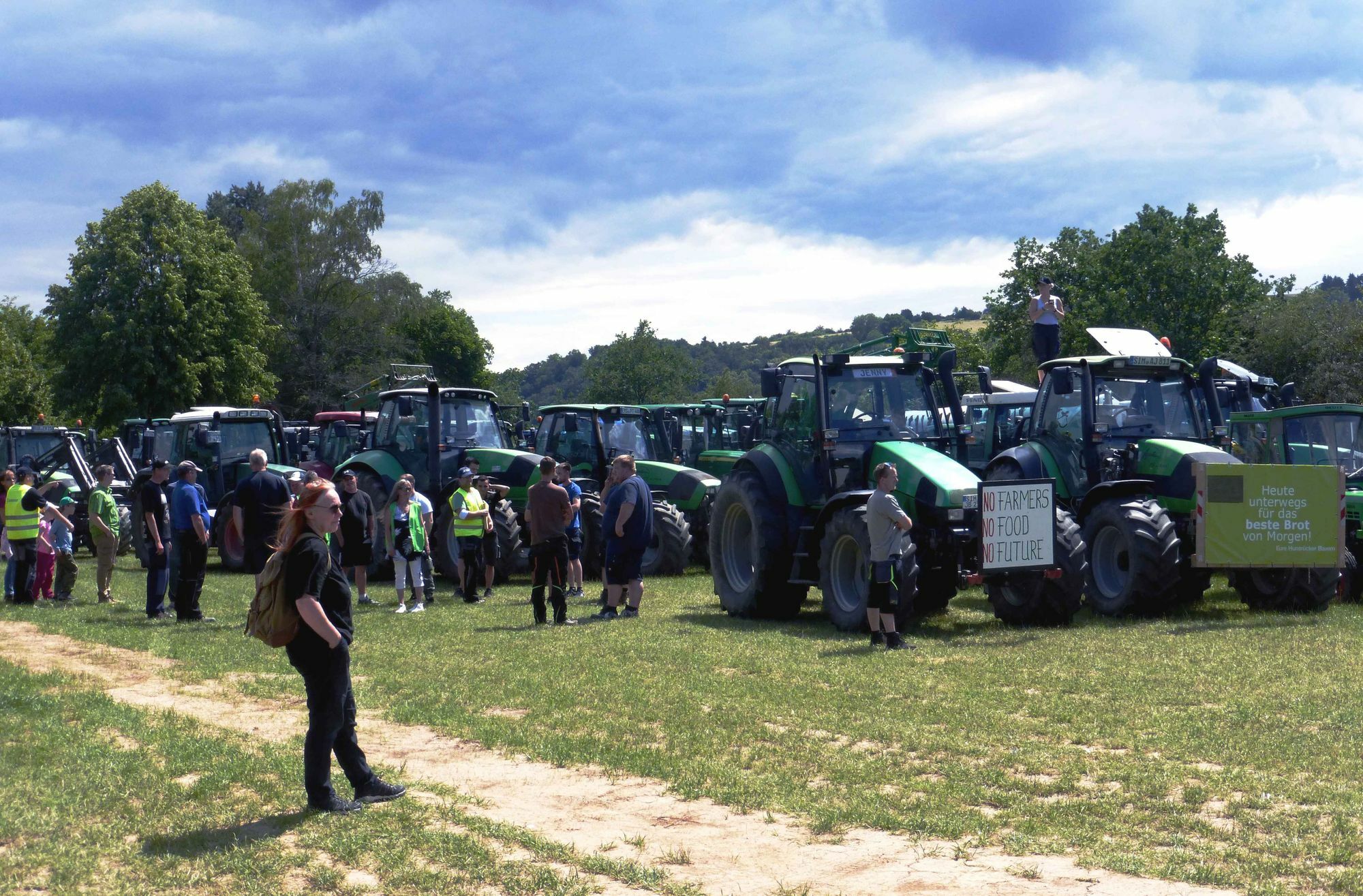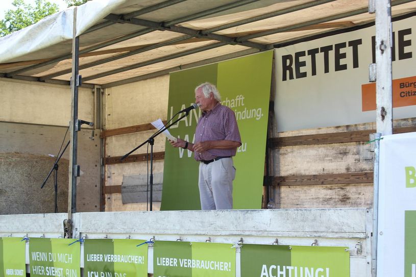 Vertreter der Landwirtschaft (Land schafft Verbindung) protestierten am Samstag, 20. Juni, gegen den Kauf der Grundstücke auf dem Loreleyplateau durch die VG Loreley. Rund 150 waren der Einladung der Bürgerinitiative (BI) Rheinpassagen gefolgt. Sie verlangen: „Landwirtschaftliche Fläche in die Hand der Landwirtschaft“.