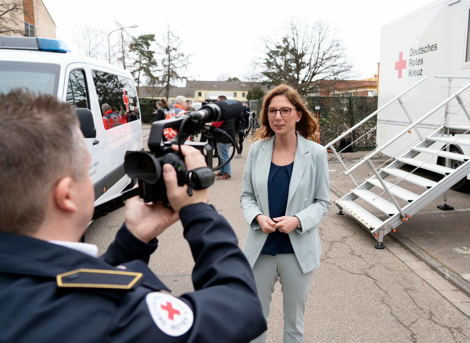 Den beiden Fachberatern aus Bad Kreuznach fiel die Aufgabe der Einsatzdokumentation per Foto und Video zu. Zudem organisierten die Rotkreuzler aus der Nahestadt Interviews und begleiteten Dreharbeiten der vielen TV-Sender. Im Mittelpunkt des Medieninteresses standen vor allem die 27 Rotkreuzler, welche sich für die gesamte Dauer des Aufenthalts mit in Quarantäne begeben werden.