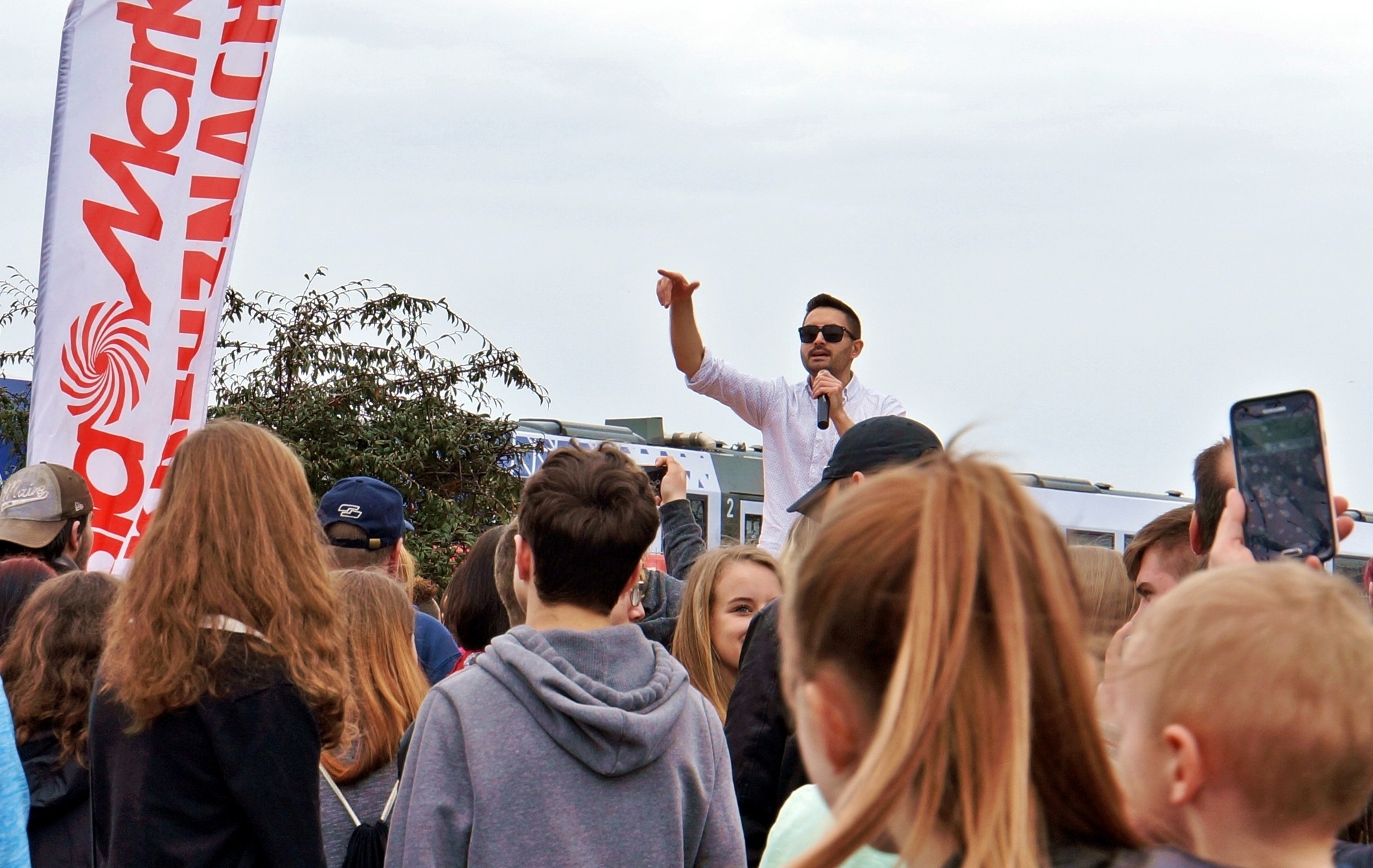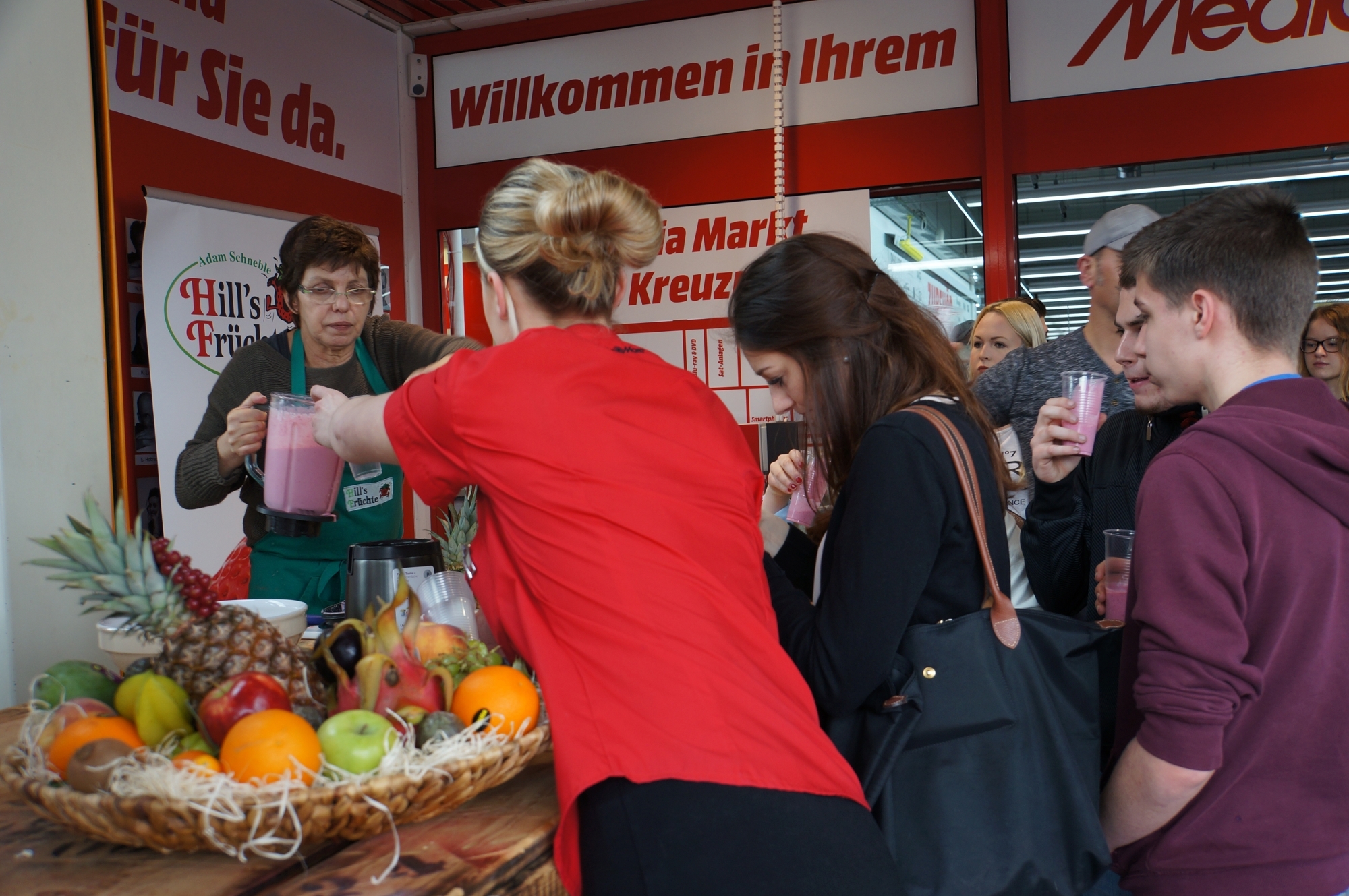 Der bescheidene Dschungel-König gab drei seiner neusten Songs zum Besten und erfüllte anschließend die Autogrammwünsche seiner Fans. Los war im Media Markt am ganzen Wochenende etwas, denn dort standen zum Start in den Frühling die »Fitness-Tage 2016« auf dem Programm. „Wir haben das Event wegen der vielen Highlights extra auf einen verkaufsoffenen Sonntag ausgedehnt“, erklärt Geschäftsführer Florian Prexl. Unter anderem konnten Adrenalin-Junkies beim Bungee Jumping den Rausch des freien Falls erleben. Das Fitness-Studio Merkelbach bot vor Ort unter anderem Körperfettmessungen an und die Experten von Hill’s Früchte luden zur Verkostung von frisch zubereiteten Smoothies ein.