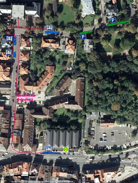 Ein weiterer wichtiger Baustein des überarbeiteten Verkehrskonzepts ist die Reduzierung des Hol- und Bringverkehrs in der Hofgartenstraße und der Reitschule und die Schaffung weiterer Anwohnerparkplätze durch eine Neuordnung der Kiss and Ride-Plätze. Wie bereits bei der Bürgerversammlung Anfang Mai von mehreren Parteien vorgebracht, soll den Eltern durch weitere Parkmöglichkeiten außerhalb des betroffenen Gebiets die Möglichkeit gegeben werden, dass ihre Kinder den kurzen Weg bis zur Schule eigenständig erledigen. Daher wird ein Teil der Bushaltestelle Hochstraße/Jahnhalle in vier Einbahnstraßenregelung umgewandelt. Die Kinder werden über die Gehwege in Hochstraße und Reitschule sicher bis zur Schule geführt. Die Zahl der Kiss-and-Ride-Parkplätze reduziert sich auf drei in der Reitschule für Anfahrende aus Richtung Rüdesheimer Straße und vier in der Hofgartenstraße für Anfahrende aus Stromberger und Winzenheimer Straße.