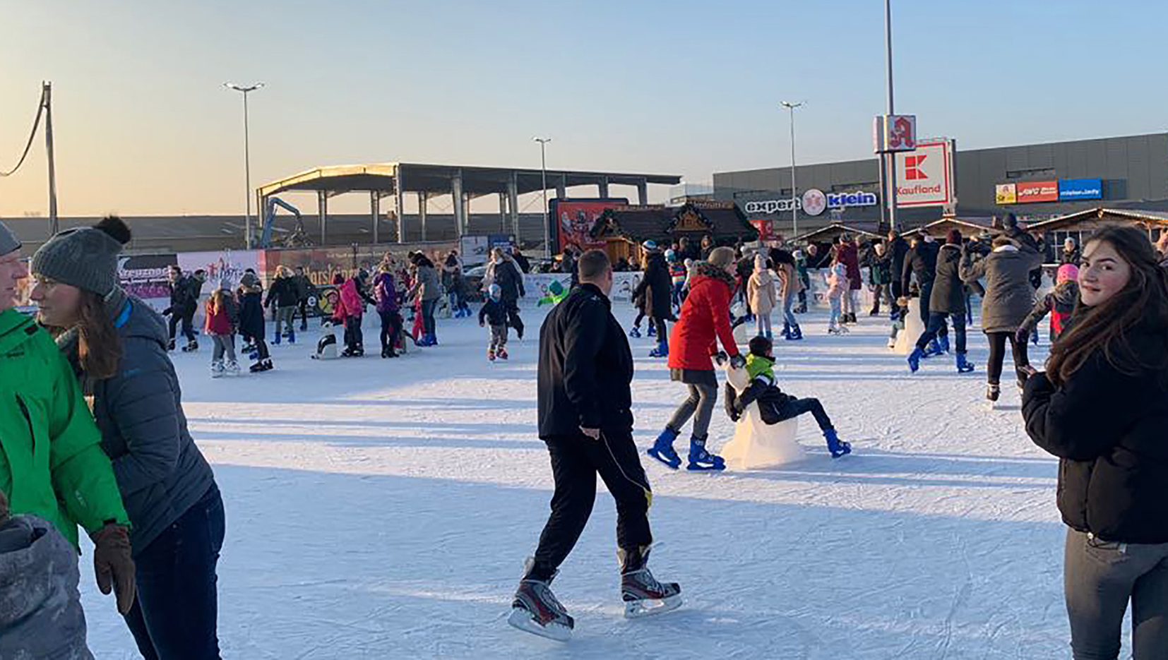 Seit mehr als vier Wochen liegt sie nun brach, die Eisbahn auf dem Kaufland-Parkplatz. Am 2. Dezember hatte die Stadt die Aufbauarbeiten gestoppt - mit Verweis auf eine fehlende Baugenehmigung. Zudem äußerte die Bauverwaltung Bedenken hinsichtlich des Lärmschutzes. Die Verwaltung bearbeite die Genehmigung zügig, um für alle eine verträgliche Lösung zu finden, hieß es noch vor Weihnachten.