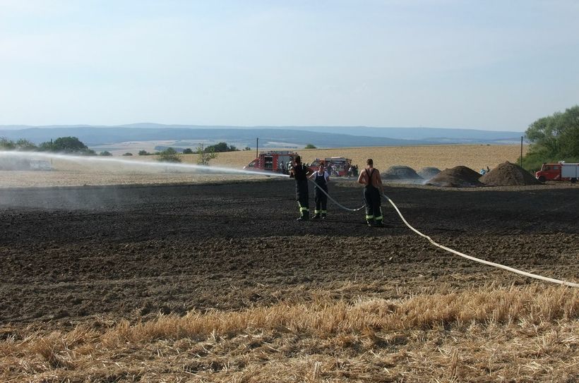 Kurz nach der Alarmierung zum gemeldeten Flächenbrand bei Hallgarten wurde ein weiterer Flächen- und Waldbrand in Limbach bei Kirn gemeldet. Hierzu wurden die Tanklöschfahrzeuge aus Bockenau, Rüdesheim und Waldböckelheim sowie im späteren Verlauf die Einheiten Winterbach und Norheim alarmiert und bekämpften bis in den Abend hinein den Großbrand gemeinsam mit zahlreichen weiteren Wehren aus den Landkreisen Bad Kreuznach, Birkenfeld, Mainz-Bingen und dem Rhein-Hunsrück-Kreis. Nächster Alarm: Duchroth Gegen viertel nach fünf am Abend folgte der nächste Alarm, dieses Mal zu einem Flächenbrand in der Gemarkung Duchroth. Mit dem Alarmstichwort „B2, brennt abgeerntetes Getreidefeld“ wurden die Wehren aus Durchroth, Oberhausen, Niederhausen, Waldböckelheim und Odernheim sowie die Führungsunterstützung alarmiert. Da sich die drei Großtanklöschfahrzeuge der VG Rüdesheim bereits in Limbach im Einsatz befanden, ließ Einsatzleiter Jörn Trautmann sofort die Tanklöschfahrzeuge der Feuerwehr Bad Kreuznach und auch die Feuerwehr Norheim alarmieren. Aus Waldböckelheim und Norheim forderte er außerdem die Kameraden Thomas Funck und Christian Butz mit zwei Tankanhängern mit 11.500 und 14.500 Litern Wasser an. Getreidefeld brannte Vor Ort stand ein Stoppelacker auf einer Fläche von 500 Quadratmetern aus unklarer Ursache in Flammen. Die ersteintreffenden Einheiten aus Duchroth, Oberhausen und Niederhausen starteten sofort die Brandbekämpfung und konnten das Feuer schnell eindämmen. Die Wehren aus Waldböckelheim und Odernheim unterstützten die Brandbekämpfung mit weiteren Rohren. Das Großtanklöschfahrzeug des Löschbezirks Süd der Feuerwehr Bad Kreuznach versorgte dabei die Odernheimer Wehr mit Wasser, die Wasserfaß-Anhänger brachten den Löschfahrzeugen aus Waldböckelheim und Duchroth das benötigte Nass. Ein Landwirt mit Traktor und Pflug vom nahegelegenen Heddarter Hof unterstützte die Eindämmung des Brandes durch Grubbern rund um die Brandstelle. Nachdem die Flammen gegen 18 Uhr gelöscht waren, wurde die komplette Einsatzstelle nochmals stark gewässert, um ein Wiederaufflammen zu verhindern. Gegen 19 Uhr war der Einsatz beendet. Schwerer Unfall mit Quad Auf der Anfahrt zur Einsatzstelle in Duchroth kam das Mannschaftstransportfahrzeug aus Waldböckelheim über einen schweren Unfall hinzu. Ein mit zwei Personen besetztes Quad hatte sich auf der L 235 in der Nähe der Brandstelle bei einem missglückten Überholvorgang überschlagen. Die Feuerwehr Waldböckelheim übernahm die Erstversorgung der schwer verletzten Patienten bis zum Eintreffen des Rettungsdienstes.