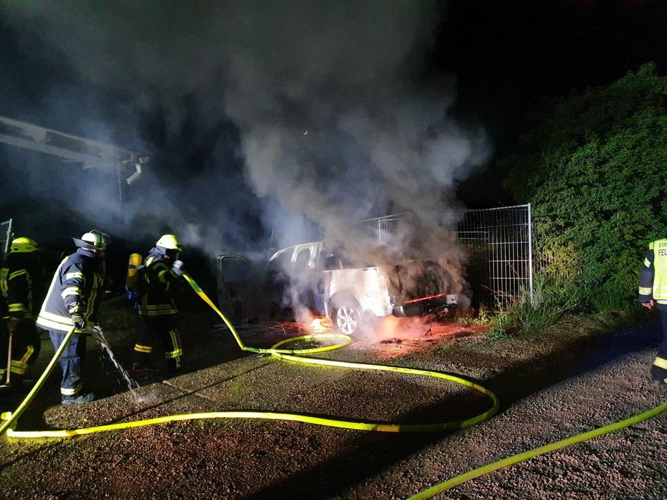 Der Flächenbrand wurde am vergangenen Montag wurde gege 18.45 Uhr gemeldet. Auf einem Grundstück Im Ellenfeld standen auf einer Fläche von etwa 150 Quadratmetern Äste und Baumstämme, die vor längerer Zeit gerodet wurden, in Vollbrand. Ein Holzhaus auf dem direkt angrenzenden Kita-Gelände wurde durch die etwa 5 Meter hohen Flammen hitzebeaufschlagt und fing bereits an zu qualmen. Der angerückte Löschbezirk Süd setzte insgesamt drei C-Rohre zur Brandbekämpfung ein, wobei als erste Maßnahme das Holzhaus gekühlt und damit vor einem Flammenüberschlag geschützt wurde. Nachdem die schlüsselführenden Personen vor Ort kamen, konnte das Holzhaus von innen kontrolliert werden. Dort waren Spielgeräte gelagert. Es kam zu keinem Schaden. Im Zuge der Nachlöscharbeiten wurden die übereinander liegenden Stämme zur Seite geräumt, um an die letzten Glutnester zu gelangen. Eine Wärmebildkamera unterstützte diese Arbeiten. Der Einsatz der insgesamt 14 Kräfte mit vier Fahrzeugen war nach etwa 90 Minuten beendet.