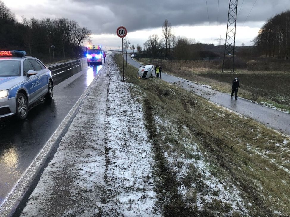 Gegen 16.30 Uhr hatte die 32-Jährige auf der nassen Fahrbahn aufgrund nicht angepasster Geschwindigkeit die Kontrolle über ihr Fahrzeug verloren und war von der Fahrbahn abgekommen. Dort kam der Wagen auf der Seite zum Liegen. Das Fahrzeug war nicht mehr fahrbereit und musste abgeschleppt werden.