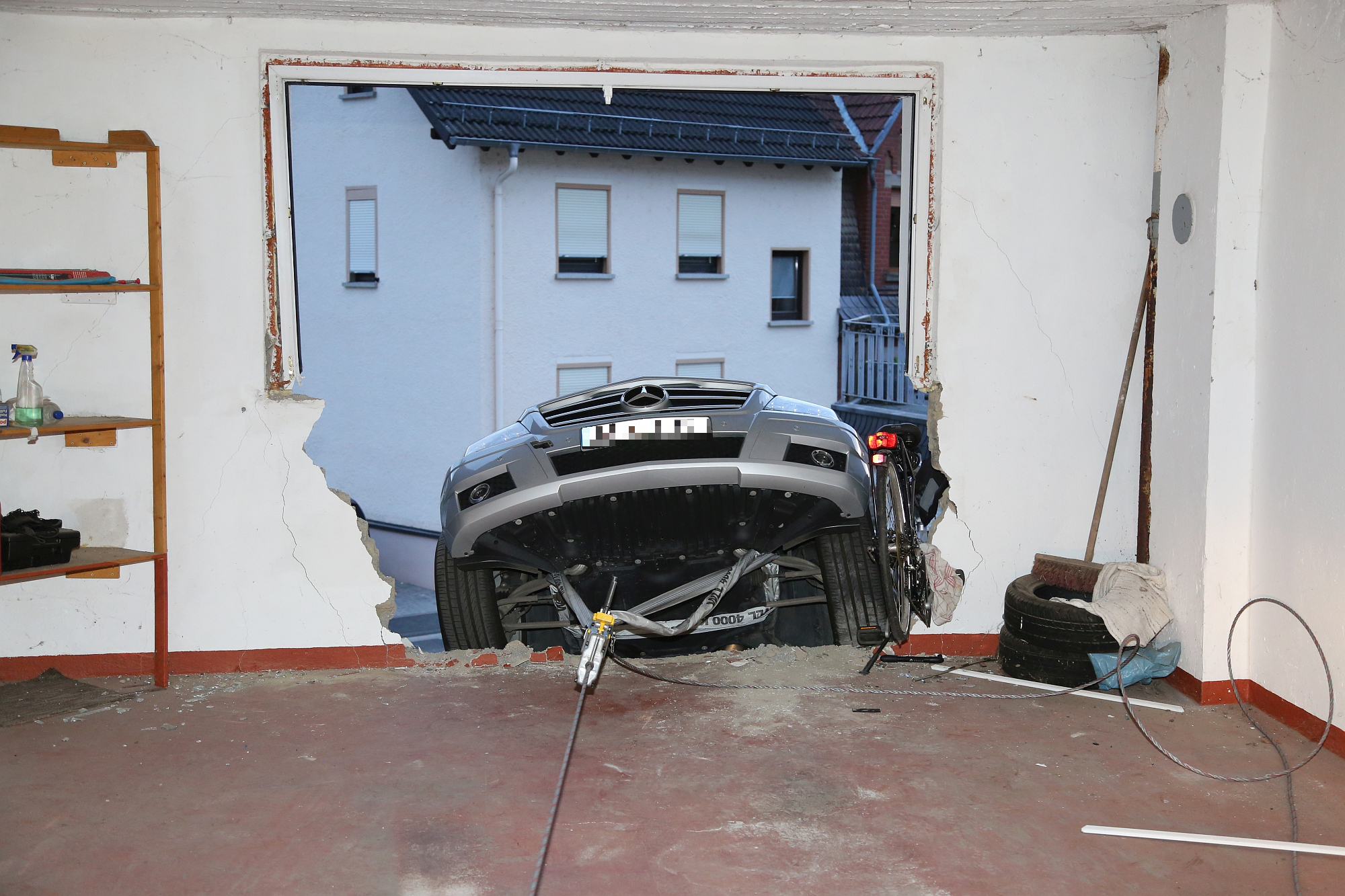 Der Mann wollte am Freitagabend gegen 19 Uhr mit seinem Auto rückwärts in seine Garage in der Dhauner Straße einparken, verwechselte dabei Gas und Bremse und druchbrach mit seinem Wagen die rückwärtige Garagenwand. Daraufhin stürzte er mit seinem Auto circa zwei Meter tief in den Hof des Nachbargrundstücks im Mühlenweg ab und blieb mit dem Heck auf einem Anhänger liegen. Der 82-jährige Unfallfahrer kam mit leichten Verletzungen davon.
