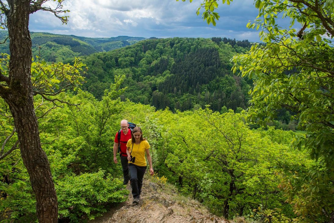 Wie im Vorjahr bieten wieder drei unterschiedlich lange Wanderstrecken reichlich Auswahl für Wanderfans und Naturfreunde. Die Langstrecke führt in 2018 über 44 Kilometer von Oppenhausen auf schmalen Pfaden durch die beeindruckenden Täler von Ehrbach und Baybach nach Kastellaun. Auf dieser sportlichen und spektakulären Strecke gibt es immer wieder weite Aussichten in den Hunsrück, die Eifel und bis zur Mosel. Die Mittelstrecke führt auf 28 Kilometern von Morshausen durch den „Grand Canyon des Hunsrücks“, das Baybachtal. Diesen Abschnitt teilen sich die Langstrecken- und Mittelstreckenwanderer. Die Kurzstrecke ist in diesem Jahr 18 Kilometer lang. Das Highlight direkt zu Beginn der Etappe ist die Hängeseilbrücke Geierlay, Deutschlands schönste Hängeseilbrücke. Nicht scheindelfreie Wanderer können die Brücker aber umgehen. Vorbei an der Burg Balduinseck geht es anschließend durch das stille Wohnrother Bachtal und über ein Hochplateau ins Ziel zur Burg Kastellaun. Die Anmeldung läuft auf Hochtouren: Die Hälfte aller Plätze sind schon belegt. Anmelden für eine der drei Strecken (jeweils maximal 400 Teilnehmer) des WochenSpiegel Wandermarathons kann man sich online. www.shs-wandermarathon.de