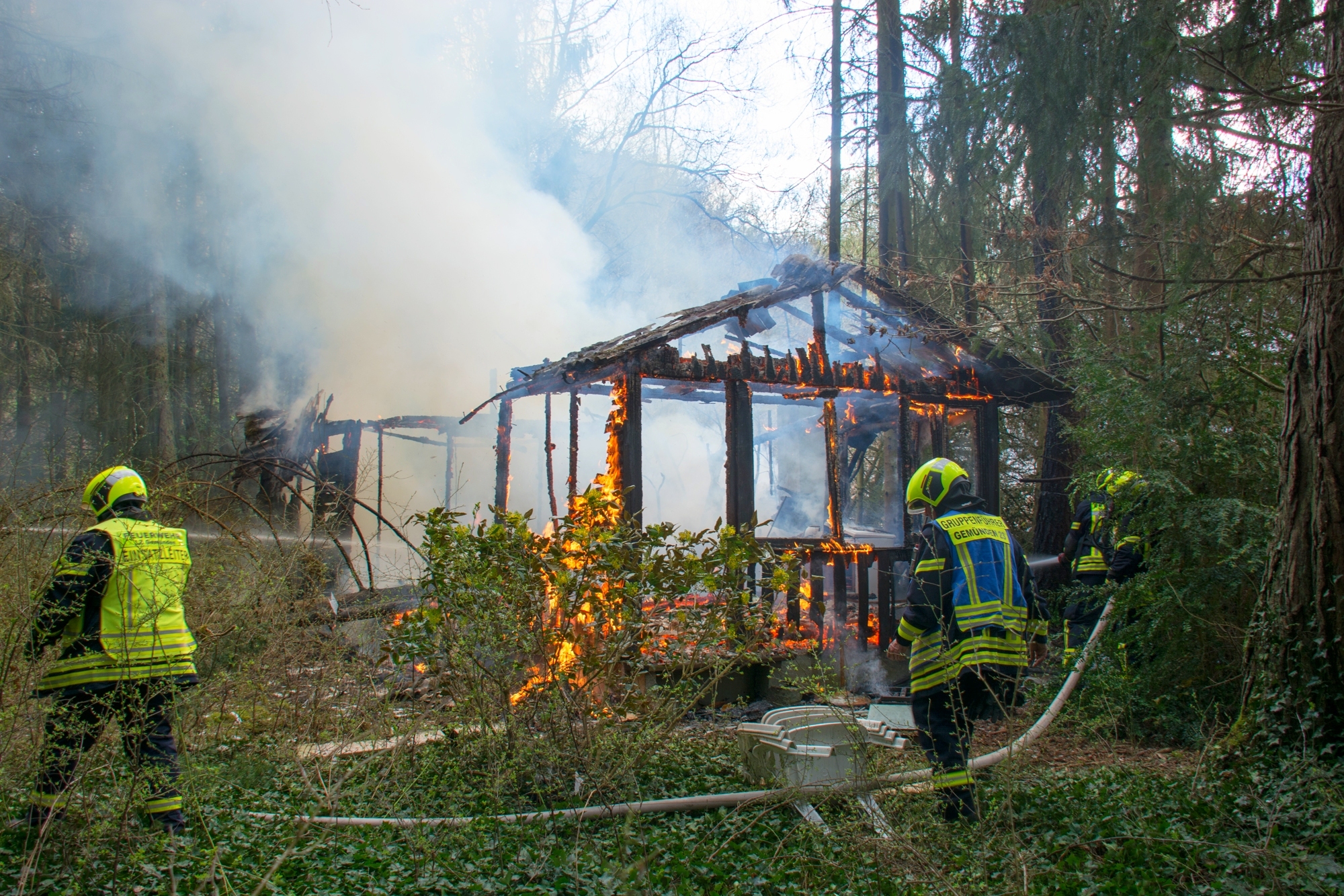Beim Eintreffen stand das ehemalige Ferienhäuschen bereits im Vollbrand. Die Löschmaßnahmen gestalteten sich anfangs schwierig, da der Weg zum Brandort nicht für die Feuerwehrfahrzeuge geeignet war, was sich rasch herausstellte. Weiterhin musste eine Wasserversorgung über die Bundesstraße 421 aufgebaut werden, der Verkehr wurde über die Schlauchbrücken geleitet. Die Ursache des Feuers ist nach derzeitigem Kenntnisstand noch unklar. Erst am Samstag brannte etwas außerhalb von Heinzenbach, ebenfalls in der Verbandsgemeinde Kirchberg, eine Grillhütte nieder. Die 20 Einsatzkräfte die unter der Einsatzleitung von René Peitz-Vier standen, hatten den Einsatz nach rund zwei Stunden beendet. Sachdienliche Hinweise nimmt die Polizei in Simmern entgegen.