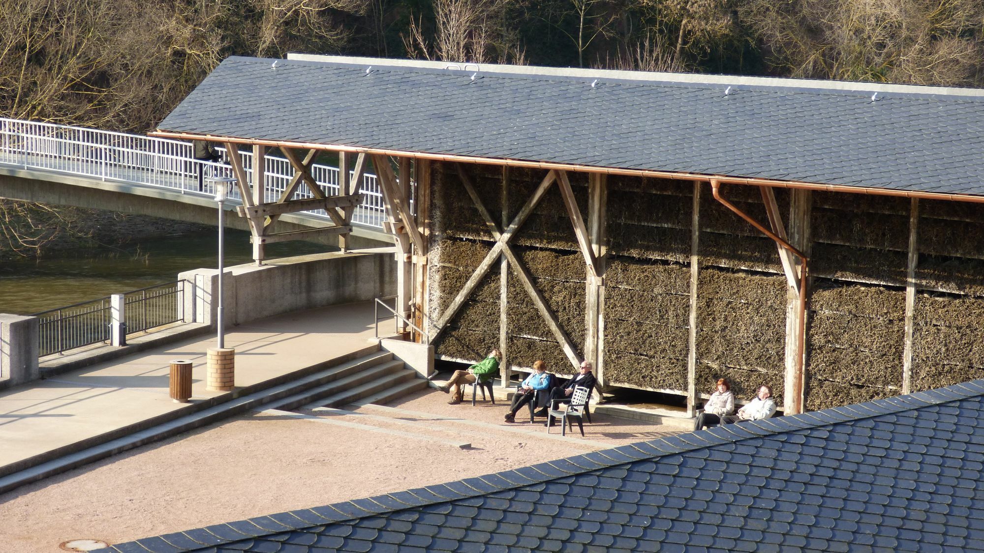 Schon jetzt erkennt man aber eine deutliche Veränderung auf den ersten Blick: Die alten, unansehnlichen Teerpappe-Dächer der kleinen Gradierwerke hat die Gesundheit und Tourismus für Bad Kreuznach GmbH durch stilechte Schieferdächer, angepasst an die Dachlandschaft des Kurhauses ersetzen lassen. Das gibt nicht nur optisch ein viel stimmigeres Gesamtbild, es war auch notwendig, weil die alten Dächer undicht waren und die Holzkonstruktion arg in Mitleidenschaft gezogen wurde. Daher wurde auch der Unterbau der beiden insgesamt 50 Meter langen Gradierwerke komplett erneuert. Dank der günstigen Witterung konnte die Winterbaustelle fristgerecht zum Abschluss gebracht werden. Die Kosten für die Sanierung lagen bei rund 100 000 Euro. Nachdem auch die Teilerneuerung der Dornen des Gradierwerkes am Freibad abgeschlossen ist, laufen nun die Saisonvorbereitungen auf Hochtouren. Pumpen und Elektrik werden überprüft, die Solewannen gewartet. Bis Ostern wird dann die Gesamte Berieselungsfläche mit einer Länge von über 1,3 Kilometern – einschließlich des funktionsfähigen Gradierwerkes im Kurpark von Bad Münster in Betrieb sein. Fraglich ist noch, wann die Wassertrete in Betrieb genommen werden kann. Sie soll vollständig neu gefliest werden, was höherer Temperaturen als derzeit bedarf.