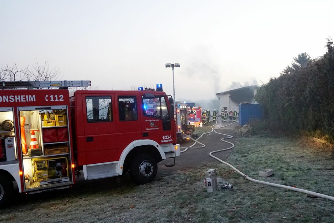 Heute morgen gegen sechs Uhr kam es zu einem Großbrand einer Lager- und Maschinenhalle in Dorsheim an der unteren Nahe. Beim Eintreffen der ersten Einsatzkräfte stand ein Teilbereich der Halle in Brand, in der Halle selbst befanden sich zu diesem Zeitpunkt keine Personen mehr.