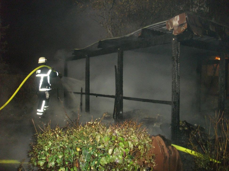 Als die Feuerwehr eintraf, standen bereits acht Großraummülltonnen und ein Holzunterstand mit einer Grundfläche von etwa 25 m² in Flammen. Das Feuer hatte bereits auf einer Länge von 10 Metern auf eine Hecke und mehrere Bäume übergegriffen, die dadurch einen Brandschaden erlitten. Personen waren zu keiner Zeit in Gefahr. Die angerückten Wehrleute des Löschbezirks Süd setzten insgesamt 3 C-Rohre und einen Schnellangriff ein, um die Flammen zu löschen. Ein Trupp wurde unter Atemschutz eingesetzt. Mit Äxten wurde mühevoll der verbrannte Müll auseinandergezogen und abgelöscht. Der völlig verbrannte Holzunterstand wurde nach den Löscharbeiten aufgrund bestehender Einsturzgefahr von den vor Ort befindlichen Polizeibeamten mit Absperrband gesichert. Mit einer Wärmebildkamera wurden Glutnester aufgespürt und abgelöscht. Die Wasserversorgung wurde von einem nahe gelegenen Hydranten sichergestellt. Die Einsatzstelle wurde mit einem Lichtmast ausgeleuchtet. Die insgesamt acht Kräfte mit zwei Löschfahrzeugen waren etwa 90 Minuten im Einsatz. Was den Brand ausgelöst hatte, war bis zum Einsatzende nicht bekannt. Die Polizei nahm ihre Ermittlungen auf.