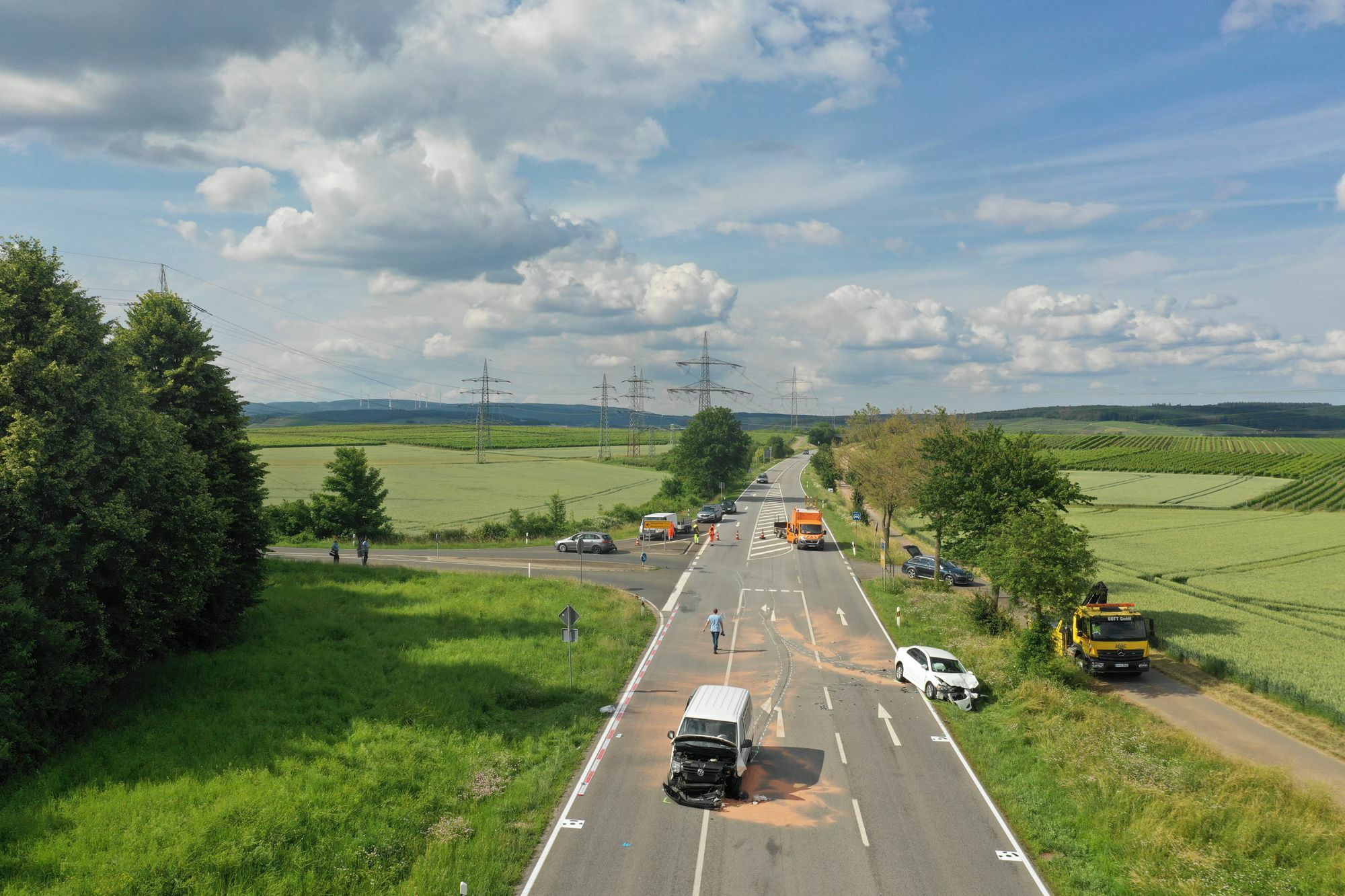 Der Fahrer des entgegenkommende VW, der mit sieben Personen besetzt war, leitete eine Vollbremsung ein und lenkte nach links. Er kollidierte leicht mit dem Heck des Unfallverursachers, rammte dann aber den Pkw eines 35-Jährigen, der hinter dem 81-jährigen Unfallverursacher fuhr, frontal. Der Wagen des 35-Jährigen wurde durch die Wucht des Aufpralls in den Straßengraben geschleudert. Drei Schwerverletzte wurden mit dem Rettungshubschrauber in verschiedene Krankenhäuser geflogen. Alle übrigen Unfallbeteiligten wurden zur Beobachtungen ebenfalls in Kliniken gebracht. Die drei unfallbeteiligten Fahrzeugen waren total beschädigt und nicht mehr fahrbereit. Die Fahrstrecke war für Dauer der Unfallaufnahme in beide Fahrtrichtungen voll gesperrt. Die Feuerwehren der umliegenden Gemeinden Windesheim, Guldental, Stromberg, Langenlonsheim waren mit insgesamt 40 Einsatzkräften vor Ort, ebenso wie mehrere Besatzungen des Rettungsdienstes.