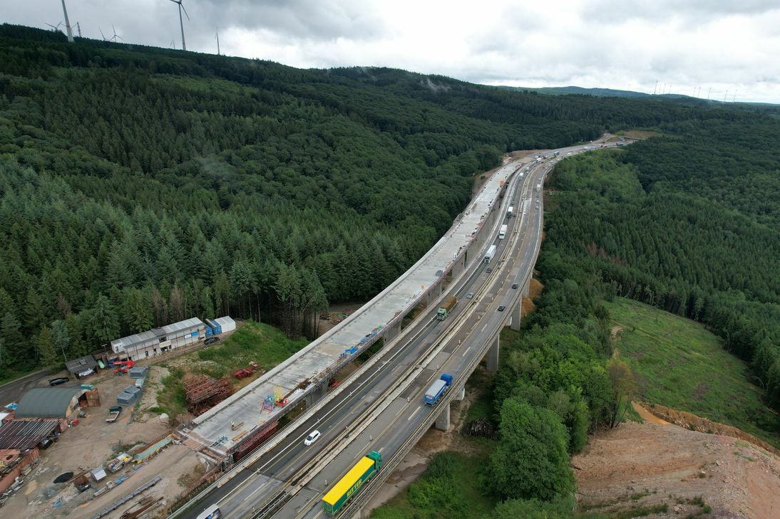 »Wir liegen weiter im Zeitplan«, betont Ulrich Neuroth, Direktor Niederlassung West der Autobahn GmbH. Diese hat die Bauherrschaft vom LBM Rheinland-Pfalz übernommen, nachdem die Autobahnen seit dem 1. Januar 2021 nicht mehr zur Auftragsverwaltung der Länder gehören. »Wir sind sehr froh den LBM als Partner an unserer Seite zu haben, der das Projekt begonnen hat und auch weiterführt«, sagt Neuroth. »Durch den Kooperationsvertrag konnte ein Baustopp vermieden werden, da wir kein Personal austauschen mussten.«