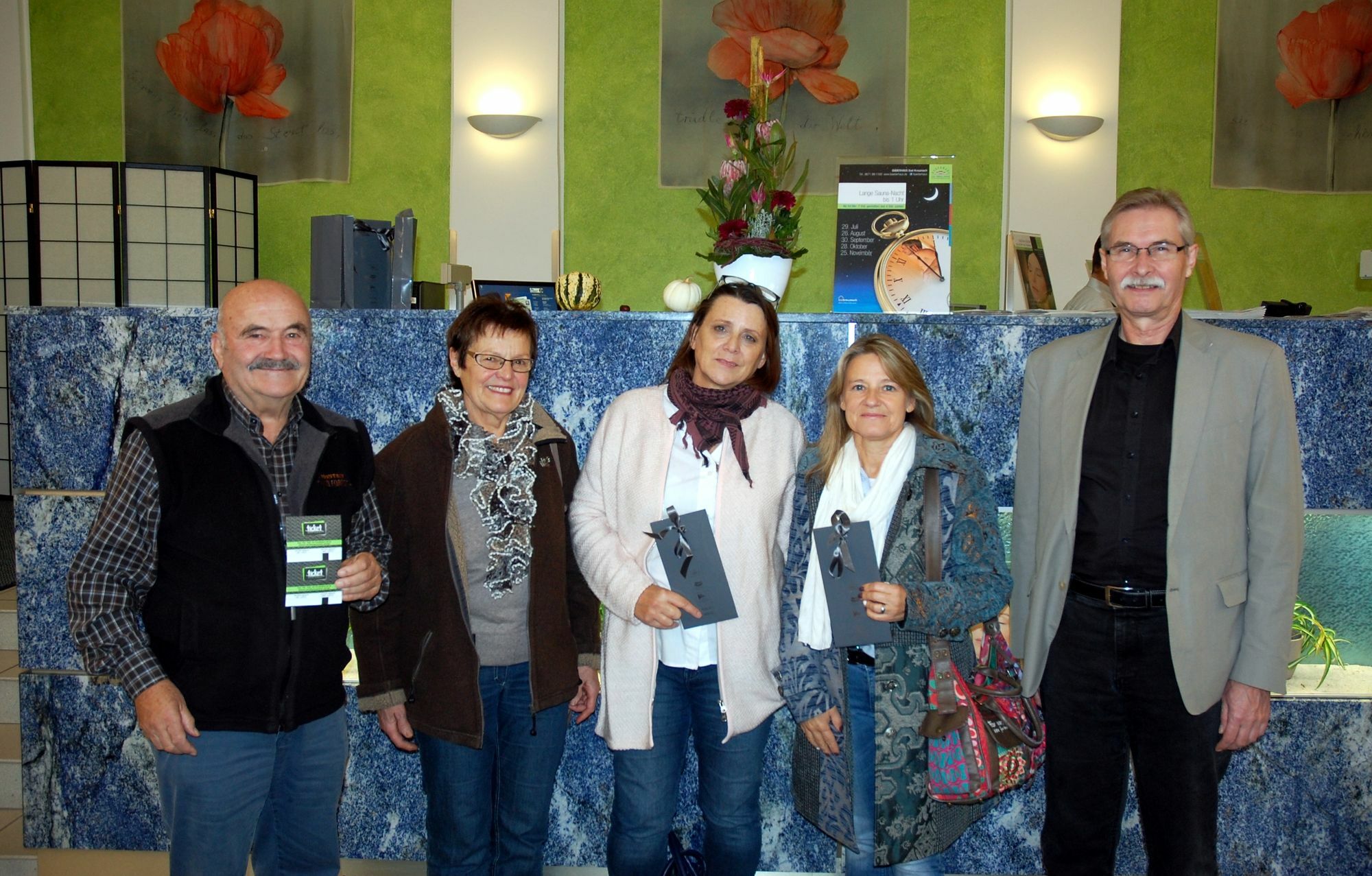 Insgesamt 608 Teilnahme-Coupons gingen beim Wochenspiegel Bad Kreuznach, der das Herbstgewinnspiel zusammen mit den Einrichtungen „Bäderhaus“, „Crucenia Thermen“ und „Crucenia Salzgrotten“ veranstaltete, ein. Und das sind die Gewinner: Den Wertgutschein in Höhe von 100 Euro gewann Michaela Schöffel aus Bad Kreuznach. Ein Wertgutschein in Höhe von 75 Euro ging an Birgit Schier Budinger aus Alf, ein Wertgutschein in Höhe von 50 Euro an Ilona Schätzel Kandulla aus Bad Sobernheim. Je zwei Eintrittskarten für die Show „Vielen Dank für die Blumen“ gewannen Gerd Gruber aus Rüdesheim / Nahe und Sabine Hartmann aus Simmern. Die Preise übergab der WochenSpiegel jüngst zusammen mit Claus Stüdemann, Geschäftsführer der Kreuznacher Badgesellschaft. Den Gewinnern Michaela Schöffel (M.), Ilona Schätzel Kandulla (2. v. r) und Gerd Gruber (l.) gratulierte Claus Stüdemann (r.) von der Badgesellschaft, persönlich. Die restlichen Gewinner erhalten ihre Preise per Post.