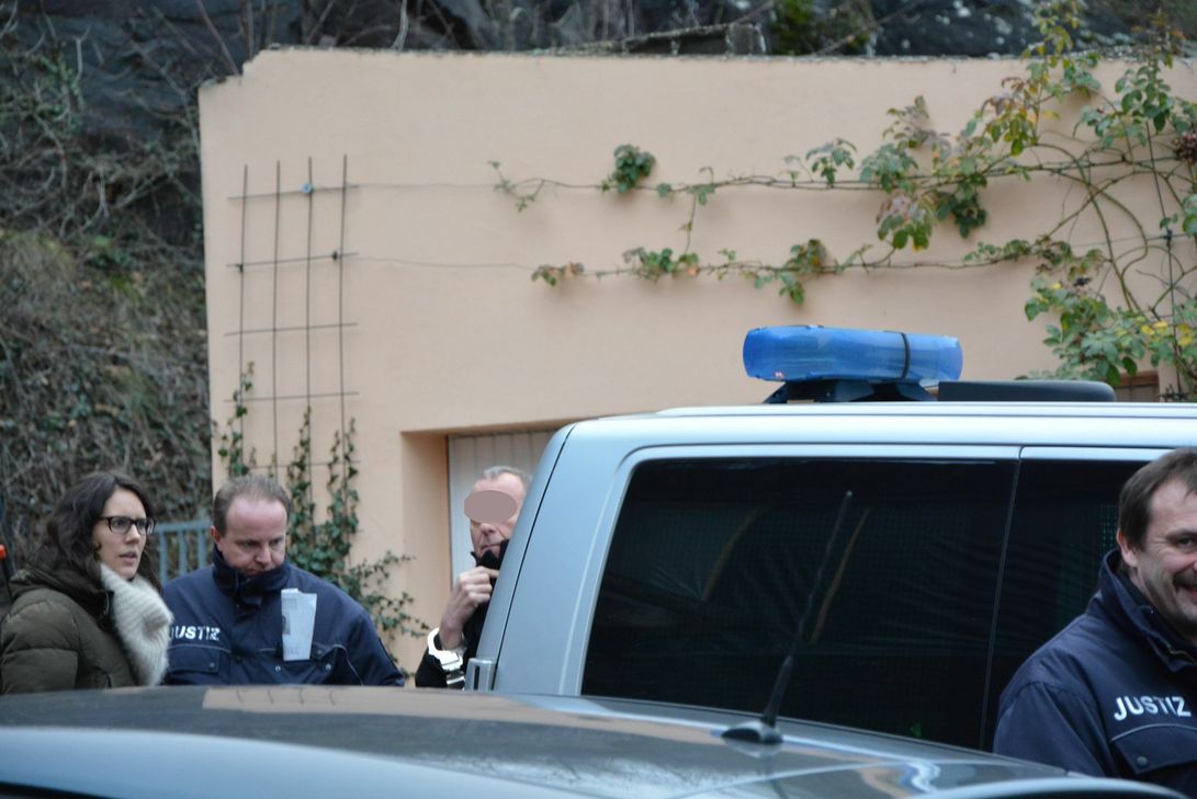 Viele Schaulustige hatten sich schon eingefunden, als nach und nach die Fahrzeuge die Inhaftierten aus den verschiedenen Justizvollzugsanstalten zum Tatort brachten. Vor Ort auch der vorsitzende Richter Dr. Bruno Kremer, Staatsanwalt Klaus Thönnessen und die Anwälte der insgesamt sechs Beschuldigten.