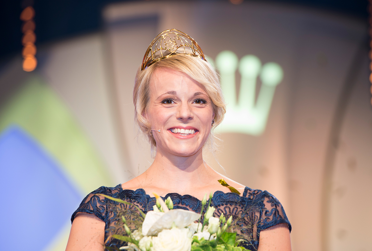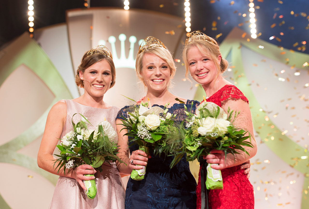 Glücklich und unter dem lautstarken Jubel der mitgereisten Fans von der Nahe nahm Katharina Staab die Krone und zahlreiche Glückwünsche entgegen. "Super, alles super“, fand die frisch gekürte Weinmajestät unmittelbar nach ihrer Wahl ausnahmsweise vorerst keine Worte. „Ich kann es noch gar nicht fassen“, jubelte sie kopfschüttelnd und hatte dabei Freudentränen in den Augen. Sie freue sich „auf viele Reisen in möglichst viele Länder, um die deutschen Weine weltweit zu vertreten.“ Wissensstark und engagiert präsentierte sich die 27-jährige Marketing-Managerin bereits im Vorentscheid, charmant und wortgewandt war ihr Auftreten im äußerst spannenden Finale. Damit überzeugte sie die Fachjury und gewann die Sympathien der rund 800 Zuschauer im Saalbau in Neustadt an der Weinstraße. Als 69. Deutsche Weinkönigin ist sie nun im Auftrag des Deutschen Weininstituts (DWI) ein Jahr lang auf über 200 Terminen im In- und Ausland als Botschafterin für den deutschen Wein unterwegs. In der Wahlgala, die live vom SWR Fernsehen übertragen wurde, setzte sich Katharina Staab gegen fünf Mitbewerberinnen durch, die nach ihrem gelungenen Auftritt am vergangenen Samstag ebenfalls von der Jury ins Finale gewählt wurden. Hier stellten die sechs jungen Fachfrauen in mehreren Runden ihre weinsensorischen, rhetorischen und kommunikativen Fähigkeiten unter Beweis. Sie kommentierten zunächst ihren eigenen Einspielfilm und meisterten eine verdeckte Weinprobe. Im Spiel „Wein-Straßenstars“ zeigten sie Menschenkenntnis, indem sie einschätzten, welcher der drei zuvor befragten „Straßenstars“ bestimmte Vorlieben oder Gewohnheiten hat und über das Thema Wein Bescheid weiß.