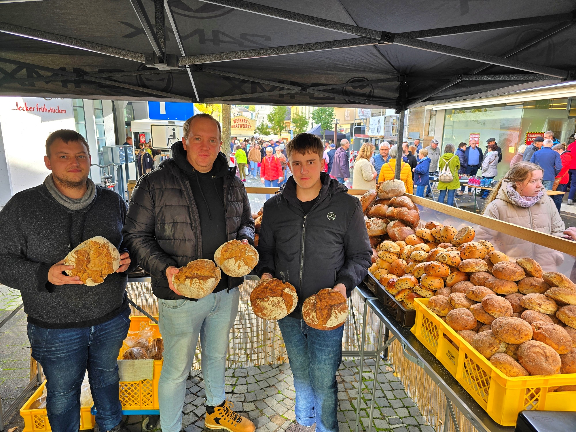 Geschäfte warben mit Außenständen und Nachlässen, etwa Ewald Ries vom Modeteam Frötschl hatte alle Hände voll zu tun. Robert Munstein von der Kirner Reservistenkameradschaft mit dem Dreiachs-Bundeswehr Lkw und der Feldküche freuten sich, dass die Kameraden ein gutes Bild abgaben und einmal mehr auf die Unterstützung des Stabszuges des Lehrbataillons 345 aus Idar-Oberstein gebaut werden konnte. Die Erbsensuppe fand reißenden Absatz. Der Kirner Heiko Günther bot Flammkuchen und Pizza an, er war ebenso zufrieden wie Metzger Lars Schmitt, der seine Grillstation aufgebaut hatte. Etliche Vereine und Organisationen präsentierten sich, die Jugendfeuerwehr Altenburg buk Waffeln, das Kirner Tierheim bot Flohmarktartikel an und die Kirner Feuerwehr bot eine Fahrzeugausstellung, samt vielen Mitmachaktionen und ein großes Kuchenbüffet. Armin Holzhauser nutzte die Gelegenheit, sein neues Modell des alten Kirner Feuerwehrhauses zu präsentieren, die selbst fahrenden Modellfeuerwehrfahrzeuge zogen kleine und große Besucher gleichermaßen in ihren Bann. Neben den großen Händlern kamen auch junge kleine Unternehmen wie "Denk Kreativ" aus Hennweiler. Geschäftsführerin Nadine Dluhi, bot an ihrem Stand selbstgebastelte Dekoration und bedruckte Textilien an. Zum Abschluss ihres Rundganges, besuchten viele Gäste den Stand von den Holzofen-Freunde. Diese hatten den kompletten Samstag im Backes verbracht, die dort hergestellten Brote, Zimt- und Schokobrätchen, fanden am Sonntag auf dem Markt reißenden Absatz. "Wir konnten noch kurzfristig die Musikband "Movi Miento" buchen, diese spielte den gesamten Nachmittag immer an verschiedenen Örtlichkeiten in der Innenstadt", berichtete Gunnar Venter von Klar. Auch der WochenSpiegel war mit einem Stand vertreten.