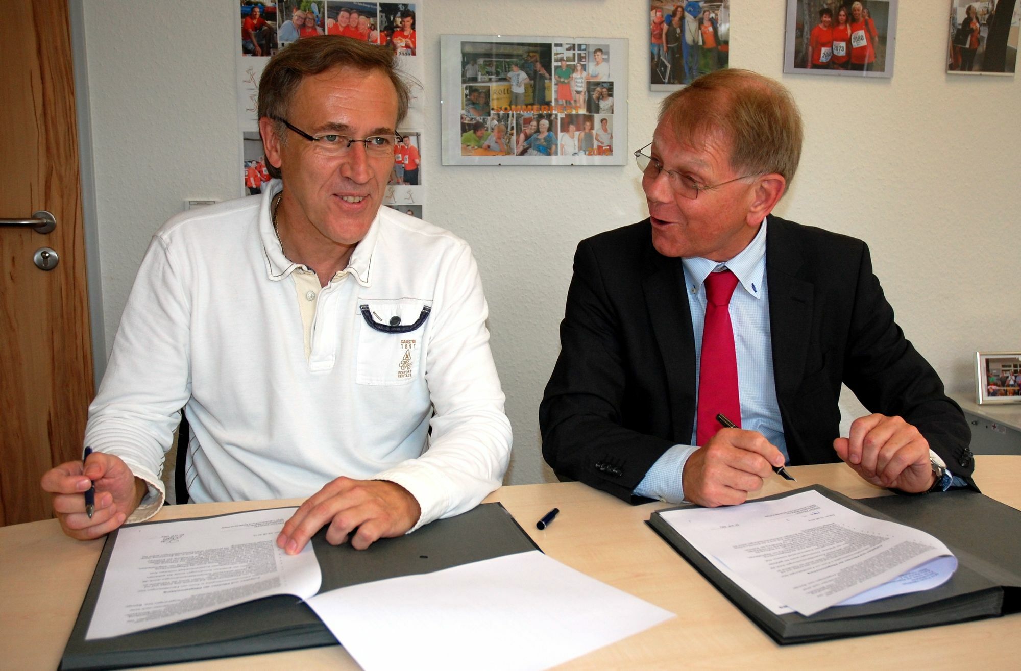 Vor kurzem unterzeichneten dort DRK-Landesgeschäftsführer Norbert Albrecht (Foto rechts) und Heinz Peter Dilly (l.), Facharzt für Innere und Allgemeinmedizin und Geschäftsführer des Medizinischen Versorgungszentrums (MVZ) Forum Valentinum in Hargesheim, einen Vertrag zur verstärkten Kooperation im Bereich der hausärztlichen und palliativen Versorgung. »Uns liegt die gute medizinische Versorgung unserer Bewohner am Herzen«, betonte Albrecht. In Zeiten, in denen jeder selbst miterleben könne, wie die hausärztliche Versorgung besonders in ländlichen Regionen immer schlechter werde, sei die Kooperation mit dem MVZ bestens geeignet, die ärztliche und auch palliative Versorgung im DRK Zentrum zu sichern. Im Rahmen der Kooperation werden künftig »mindestens einmal wöchentlich und bei Bedarf auch öfters« Visiten im DRK Zentrum Rüdesheim angeboten, erläuterte Dilly. Hinzu kommen regelmäßige Fallbesprechungen und eine intensive Kommunikation zwischen dem MVZ und der Senioreneinrichtung. »Die Kooperation schließt auch die palliativmedizinische Versorgung ein, so dass unsere Bewohnen bis zum Lebensende in ihrer gewohnten Umgebung bleiben können«, so Hausleiterin Elies Pastrik. »Das Recht auf freie Arztwahl bleibt trotz der nun vereinbarten Kooperation natürlich für alle gewahrt«, ergänzte Albrecht.