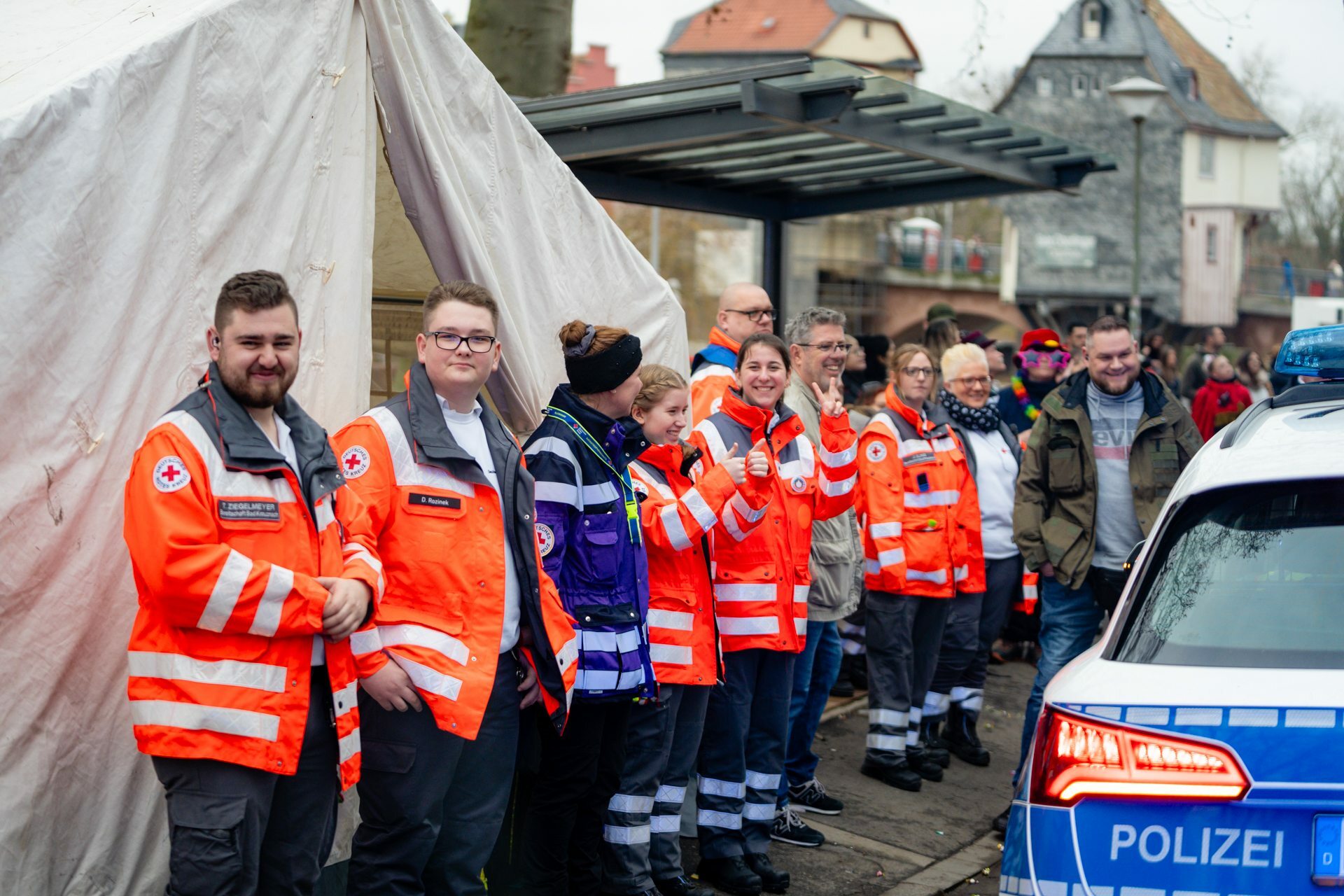 Hinsichtlich des Einsatzaufkommens blickt auch das Rote Kreuz auf einen eher moderaten Sanitätsdienst bei der Kreiznacher Narrefahrt zurück. Insgesamt versorgten die Sanitäter rund 35 Patienten entlang der Zugstrecke oder im Behandlungszelt in der Roßstraße. Für die Hälfte von ihnen war eine Weiterbehandlung im Krankenhaus erforderlich. Schwere Verletzungen oder akute Erkrankungen blieben in diesem Jahr glücklicherweise aus.