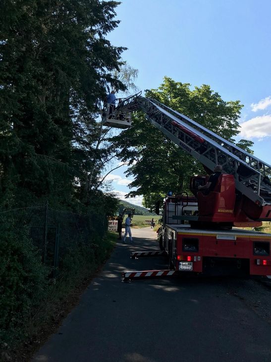 Während sich die Beamten telefonisch Ratschläge über einen ortsansässigen Jäger und den rheinland-pfälzischen Landesverband der Falkner einholte, fuhr eine Funkstreife vor Ort, um die Situation der Jungvögel in Augenschein zu nehmen. In unmittelbarer Nähe der Jungvögel entdeckten die Helfer in einer Höhe von etwa zwölf Metern ein Nest. Mit Unterstützung der freiwilligen Feuerwehr Bad Sobernheim, die mit einer Drehleiter vor Ort war, wurde versucht die Jungfalken wieder in ihr Nest zu setzen. Wie sich herausstellte, wohnten in dem Nest allerdings Eichhörnchen, weswegen dieser Versuch der Rettung fehlschlug. Die Jungfalken wurden im Anschluss in die Obhut der Tierarztpraxis Erbeldinger in Merxheim gegeben. Diese werden die Jungvögel entsprechend versorgen und diese dann an einen ortsansässigen Falkner zur Aufzucht weitergeben.