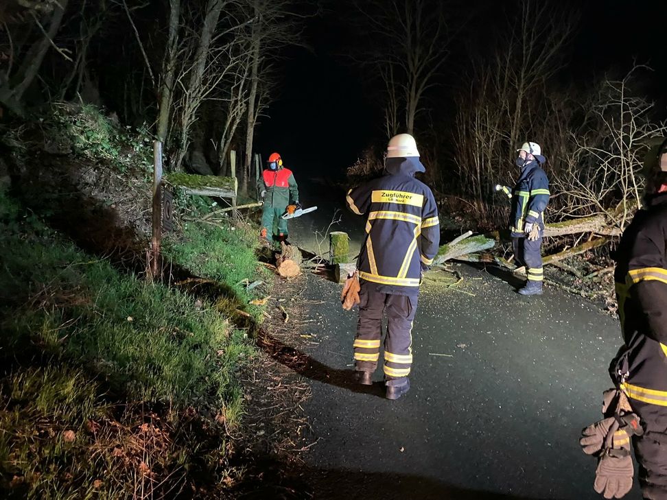 Bad Kreuznach. Der erste Einsatz führte die Wehrleute des Löschbezirks Nord am Freitagabend in die Winzenheimer Straße. Dort wurde ein auf der Fahrbahn liegender kleiner Baum mit der Motorsäge entfernt. Weiter ging es in den Dienheimer Berg. Dort hing ein entwurzelter Baum in einem weiteren Baum. Auch hier mussten die Wehrleute mit der Motorsäge anrücken. Noch während dieses Einsatzes wurden die Löschbezirke Süd, Ost und West zu einem Einsatz in ein Seniorenheim im Brückes gerufen. Dort hatte der Sturm das Rauchansaugsystem in der Tiefgarage ausgelöst.
