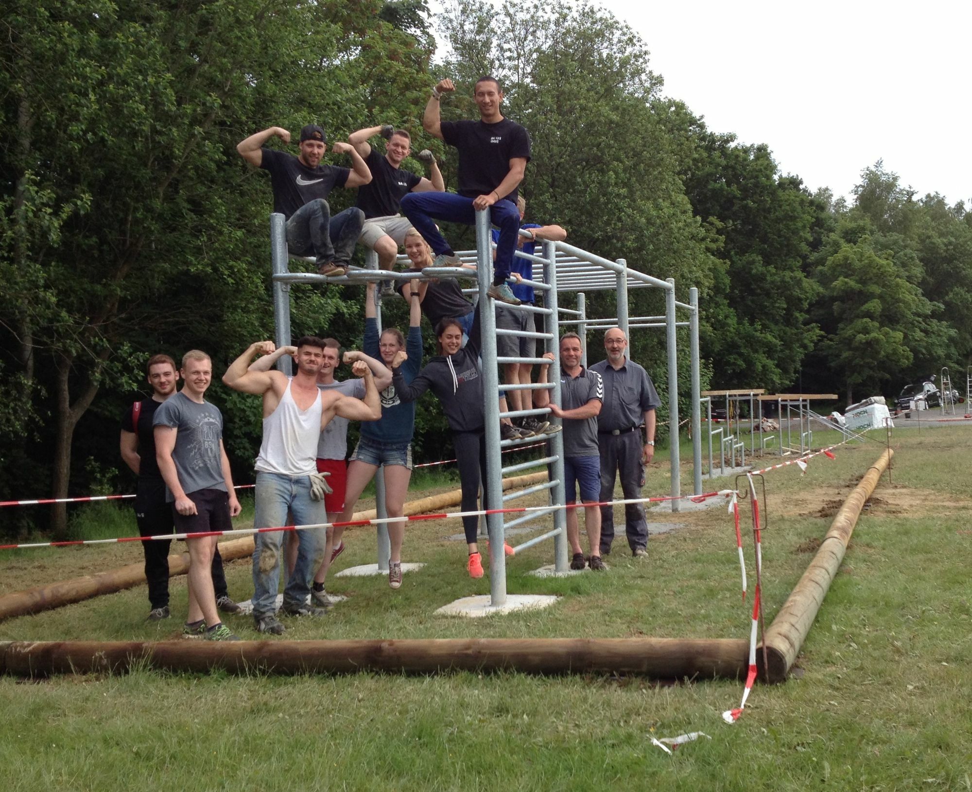 Als sich die zwei Studenten in einem Schreiben erstmals an die Leitung der Hochschule wandten, erahnten sie noch nicht, dass knapp ein Jahr später ihre Idee von einem Calisthenics Workout Park schon umgesetzt sein könnte. Beide sind in dieser Sportart in verschiedenen Parks deutschlandweit aktiv, einer sogar in der deutschen Spitze. Der Freundeskreis der Hochschule der Polizei hat sich dem Projekt angenommen. Unterstützt wird er dabei vom 14. Bachelorstudiengang und der Hochschulgemeinde Büchenbeuren. Bei idealen Wetterbedingungen haben die Bauarbeiten des Calisthenics-Parcours im Mai mit über 30 freiwillige Helferinnen und Helfer begonnen. Mitte Juni wurden die Arbeiten am Stadion fortgesetzt. Bürgermeister Guido Scherer hat dabei mit großem Elan geholfen und neben einem Betonmischer und einem Erdbohrer auch eine Tauchpumpe dabei gehabt. “Und die haben wir bei den aktuellen Wetterbedingungen auch gebraucht”, freut sich der Vorsitzende des Freundeskreises, Ernfried Groh, über die großzügige Unterstützung. Bei leichtem Nieselregen und bester Stimmung konnten die freiwilligen Helferinnen und Helfer den Aufbau des Parcours erfolgreich abschließen. Drei Betonmischer waren sieben Stunden im Einsatz und sorgten für knapp 14 Kubikmeter Beton, den es zu verarbeiten galt. Auch für das leibliche Wohl wurde wieder bestens gesorgt: “Die Arbeit soll schließlich nicht nur hart und erfolgreich sein – sie sollte vor allem auch Spaß machen. Was nun noch folgt ist die TÜV-Abnahme.