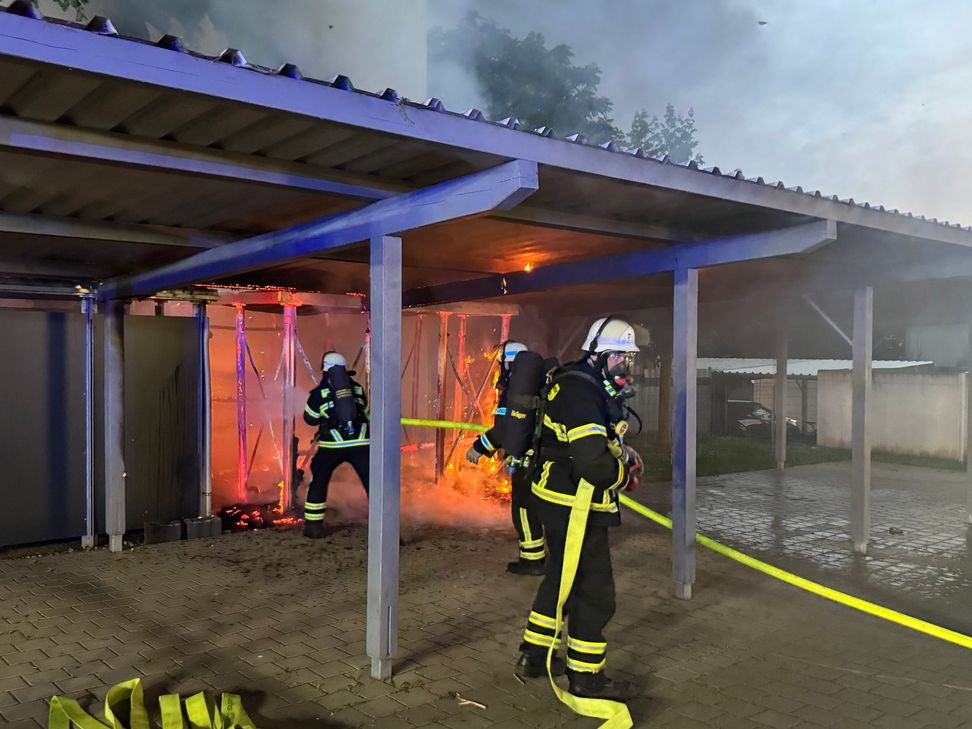 Passanten und Anwohner hatten über den Notruf den Brand von Mülltonnen gemeldet, der sich rasch ausbreitete. Die Flammen griffen auf ein nahegelegenes Carport über und setzten die Fassade eines Mehrfamilienhauses in Brand. Die enorme Hitze beschädigte Fenster, wodurch Rauch in die Wohnungen drang.