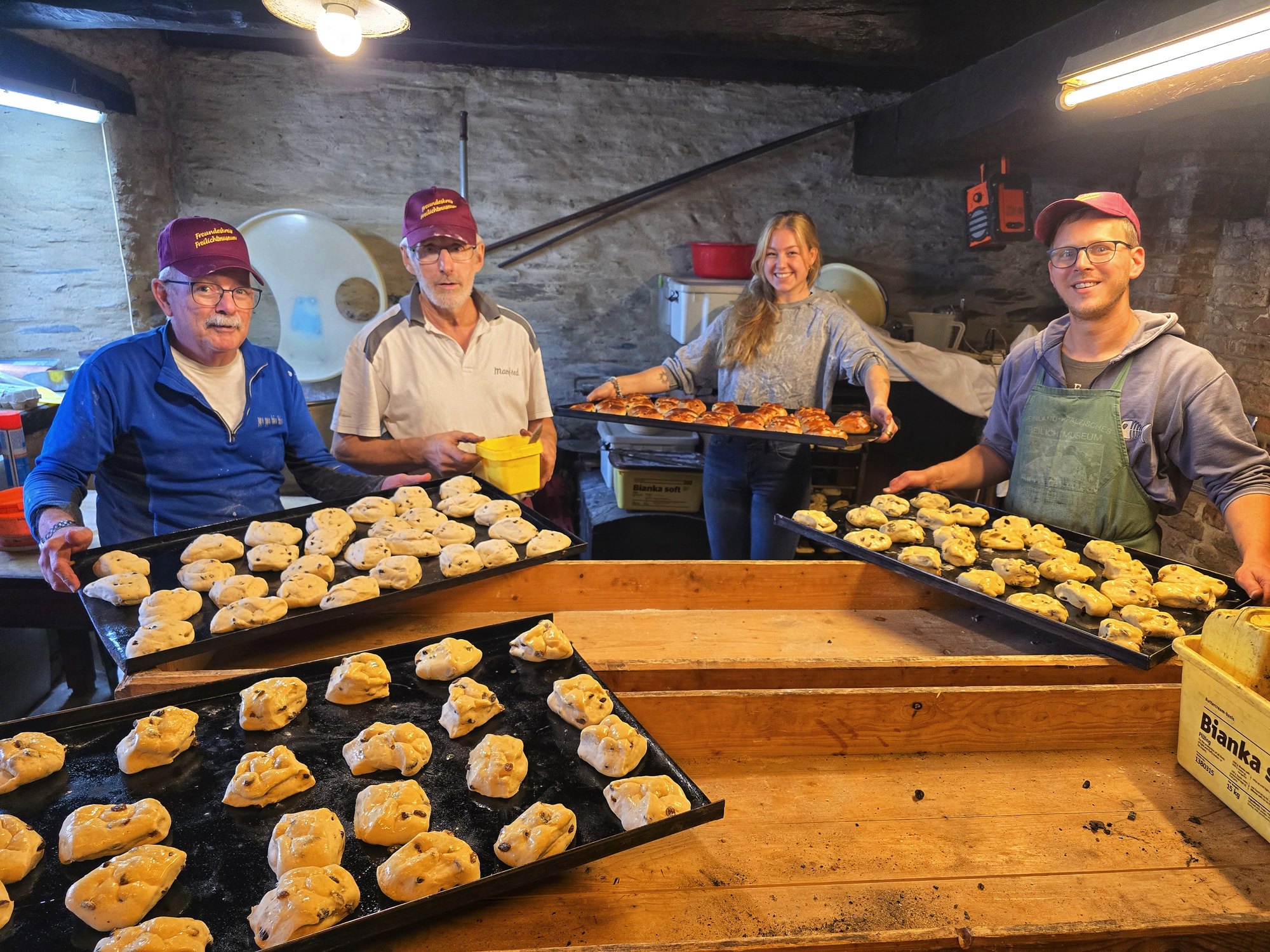 Ein Magnet war erneut der Museums-Backes. Schon vormittags bildeten sich lange Schlangen, um eines der frisch gebackenen Brote oder Brötchen zu ergattern. Der Duft aus dem Steinofen zog über das Gelände und machte den Stand zum Anziehungspunkt schlechthin. Viele Besucher stärkten sich mit ofenwarmem Gebäck für den Rundgang.