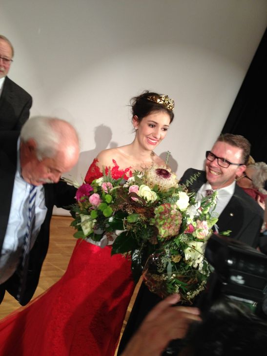 Ihr zur Seite stehen im Amtsjahr 2015-2016 die neuen Naheweinprinzessinnen Laura Kunz (19) aus Gutenberg und Franziska Finkenauer (22) aus Bad Kreuznach. Clarissa Peitz, Jahrgang 1994, kommt aus der Traditionsreichen Weinbaugemeinde Wallhausen. Der Kontakt mit Menschen ist ihr wichtig, dies lebt sie auch schon von klein auf im elterlichen Betrieb. In ihrer Freizeit liebt sie es sportlich, egal ob auf dem Motorrad oder auf den Skiern. Fundament zum glücklich sein ist für sie das Miteinander, ob mit Familie, Freunden oder bei der Fastnacht. Nahewein ist für Clarissa Peitz Faszination in einem Glas, außergewöhnlich, besonders, einzigartig, imponierend, unwiderstehlich und verführerisch. Genau das möchte sie den Menschen in ihrem Amtsjahr näher bringen. Ihr Wunsch für die Zukunft? Ganz nach Faust, „dass jeder erkenne, was die Welt im Innersten zusammenhält“.