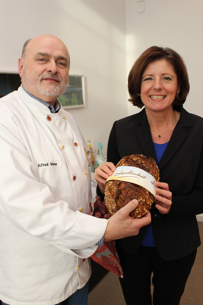 „Das müssen Sie mal probieren!“ Mit diesen Worten schenkte Obermeister Alfred Wenz der Ministerpräsidentin zum Abschluss des Besuches noch eines seiner saftigen Kirner Landbierbrote.