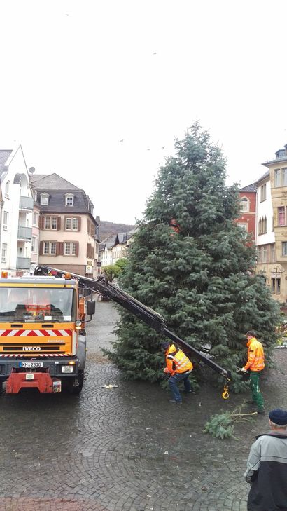 Alle Jahre wieder ein prachtvoller Anblick: Die Kirner Christbäume. Gespendet werden sie in diesem Jahr von verschiedenen Gemeinden und Privatpersonen. Die Bäume werden die nächsten Tage mit Lichtern geschmückt und erleuchten dann bis zu Heilige Drei König den Marktplatz, die Kyrburg, den Bahnhofsvorplatz, den Dorfmittelpunkt in Kirn-Sulzbach und Kallenfels.