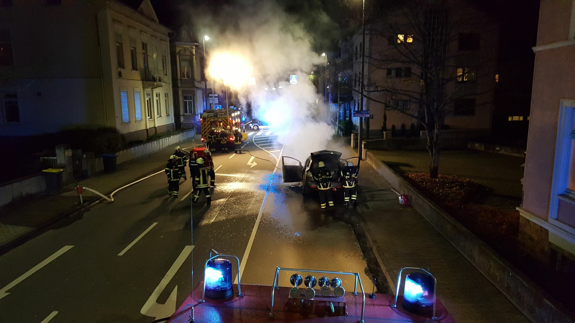 Ein brennender Pkw sorgte gestern Abend für einen Feuerwehreinsatz in der Salinenstraße. Der Motorraum des Fahrzeugs fing auf Höhe des Parkhauses Badallee plötzlich Feuer. Als die Feuerwehrleute des Löschbezirks Süd eintrafen, stand der Wagen bereits lichterloh in Flammen.