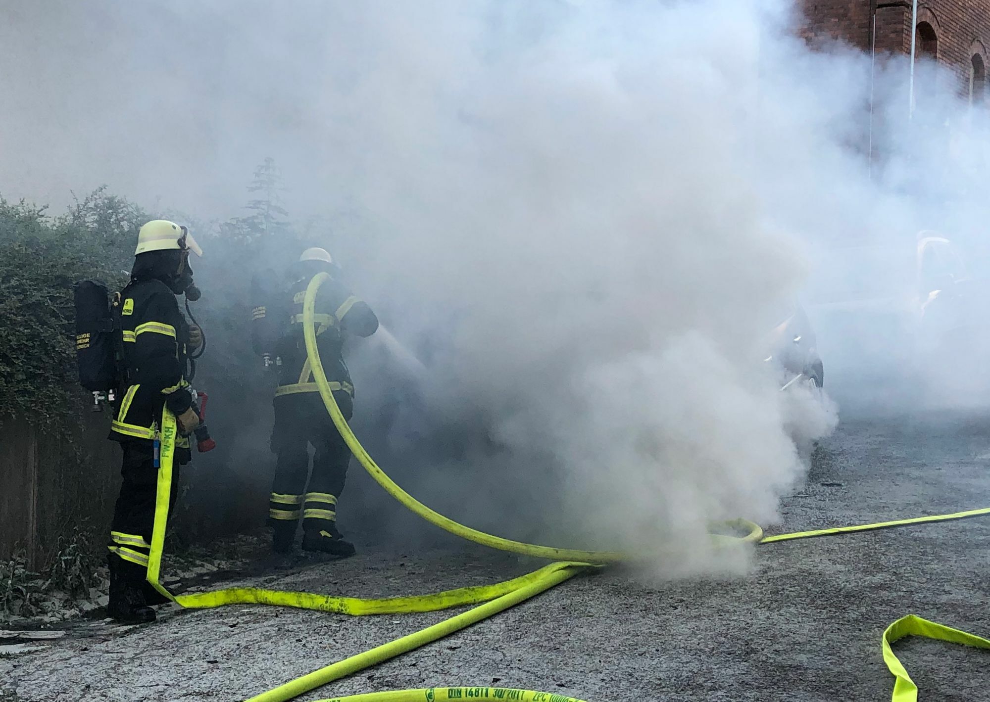 Ein in einem Hof abgestellter PKW stand am Samstag, 2. Juni, gegen 19 Uhr, im Brückes ausgehend vom Motorraum in Vollbrand. Personen befanden sich nicht in dem Fahrzeug. Die daneben befindlichen Hecken brannten bereits. Ein in etwa 2 Meter Entfernung stehendes Gebäude mit einer darin befindlichen Werkstatt war durch Flammenausbreitung bedroht. Die angerückten Kräfte des Löschbezirks Nord nahmen einen Trupp unter schwerem Atemschutz mit einem C-Rohr zur Brandbekämpfung vor. Ein zweites C-Rohr wurde zur Riegelstellung vorgenommen. Zur Sicherheit wurde ein weiteres Tanklöschfahrzeug angefordert. Durch einen Hydranten wurde die Löschwasserversorgung sichergestellt. Eine Brandausbreitung konnte glücklicherweise verhindert werden. Der Einsatz war nach etwa einer Stunde beendet.