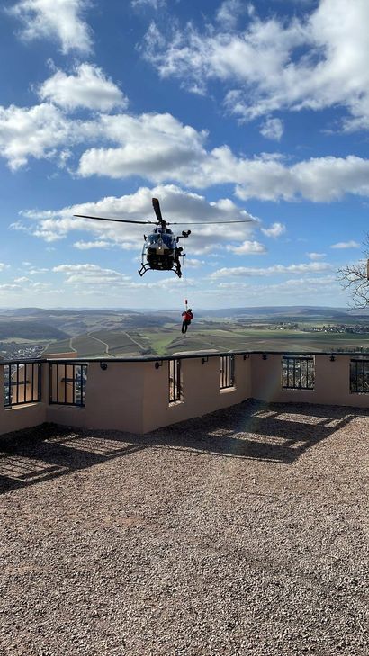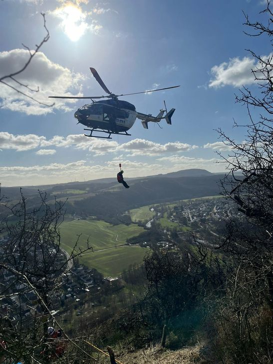 Bad Münster am Stein. Ein 24-jähriger Mann aus Hessen war gegen Mittag von der Bastei abgesprungen. Kurz nachdem er seinen Schirm geöffnet hatte, wurde der junge Mann von einer Windböe erfasst und gegen den Rotenfels gedrückt. Dort konnte sich der Mann bis zum Eintreffen der Bergwacht festhalten. Aufgrund der komplexen Lage des Fallschirmspringers gestaltete sich seine Rettung aufwendig. Einsatzleiter Christian Vollmer forderte deshalb nach Abstimmung mit der Bergwacht einen Hubschrauber mit Seilwinde der Polizei Hessen aus Egelsbach an.