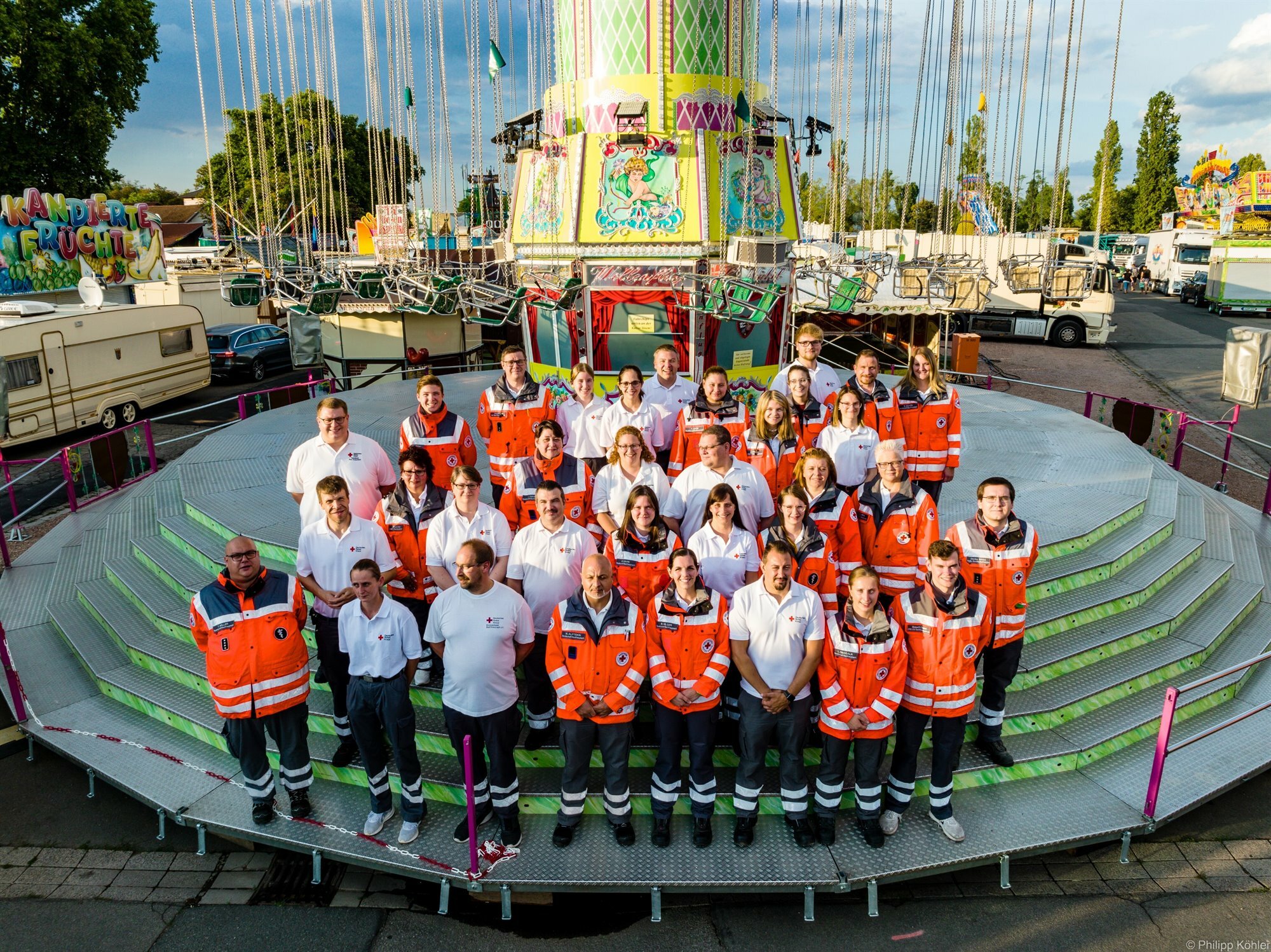 Damit bei kleineren und größeren Notfällen alle Schausteller und Jahrmarktsbesucher bestens versorgt sind, ist das DRK mit insgesamt 60 ehrenamtlichen Rotkreuzlerinnen und Rotkreuzlern im Einsatz. Zudem unterstützen mehrere Ärztinnen und Ärzte das Team des DRK. Bis zu sechs mobile Einsatzteams sind jederzeit auf dem Festgelände unterwegs und direkt für Hilfeersuchen ansprechbar. Ausgestattet mit Notfallrucksack und Funk ist so schnelle und professionelle Hilfe vor Ort. Für Notfälle stehen zudem ein Rettungswagen und ein Krankentransportfahrzeug bereit.