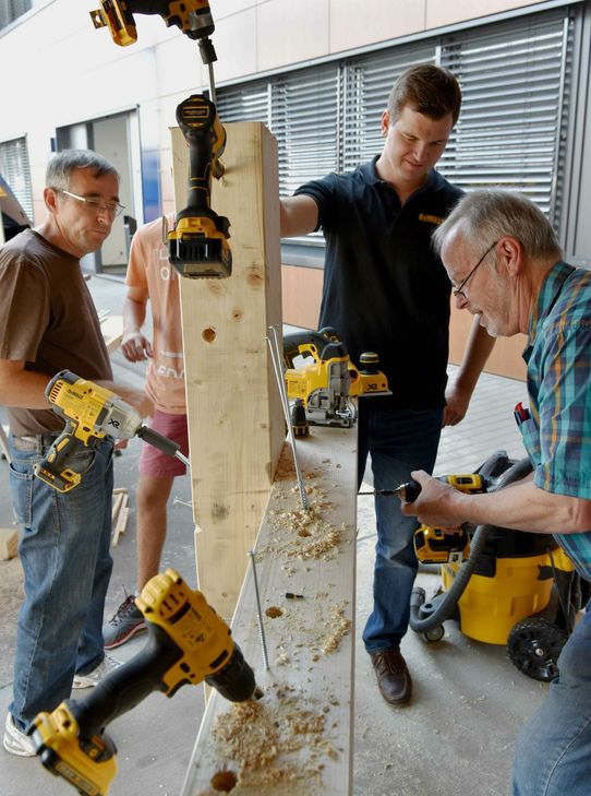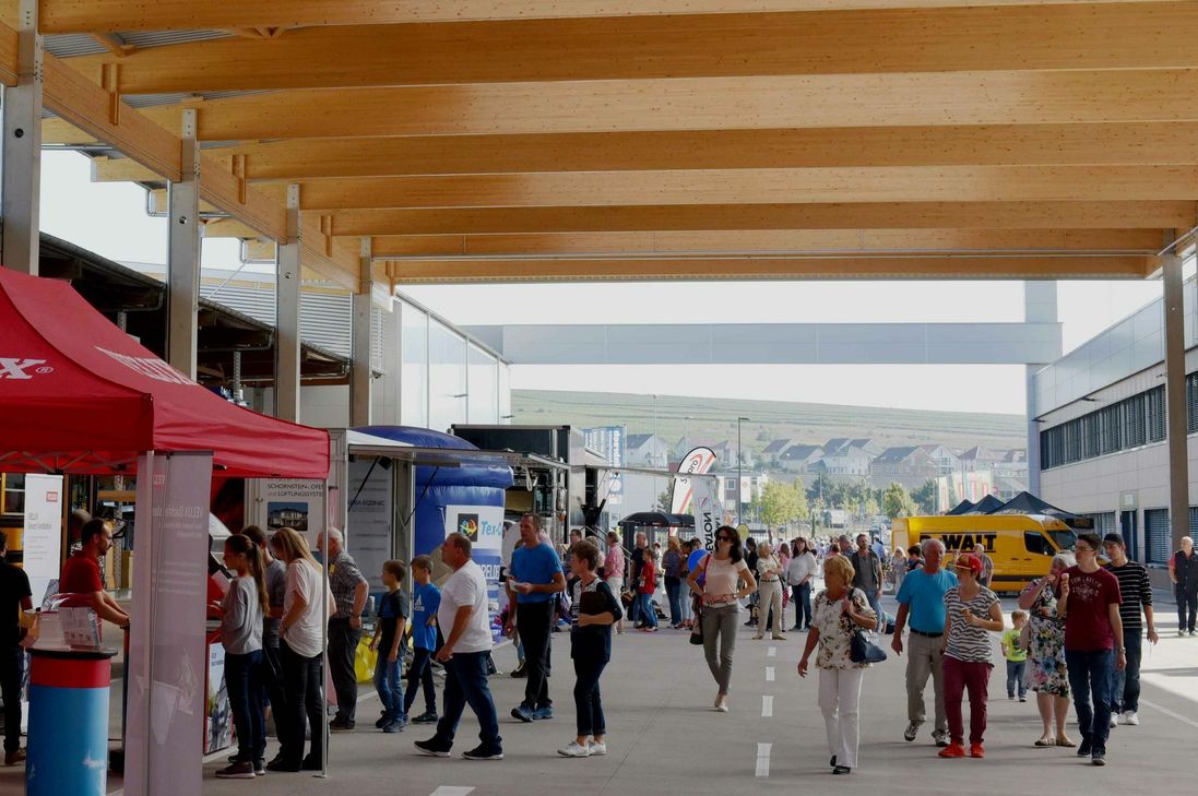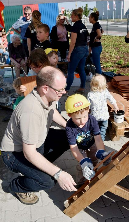 Darin sind attraktive Ausstellungen, ein 850 Quadratmeter großer SB-Fachmarkt sowie Büros und Sozialräume für rund 100 Mitarbeiter zu finden. Die Kunden sind dazu eingeladen, hier alle Welten des Bauens mit den Schwerpunkten dekoratives Holz, Fliesen und Dach zu entdecken. Vor dem Objekt liegen ein großzügiger Kundenparkplatz sowie eine 1000 Quadratmeter große, fantasievolle Garten- und Landschaftsbauausstellung, die Lust aufs „grüne Wohnzimmer“ weckt. In der riesigen, überdachten Ladezone, an die ebenfalls überdachte Hochregallager angrenzen, können die Kunden schwere oder sperrige Waren in ihre Fahrzeuge laden lassen. Das 100.000 Quadratmeter große Betriebsgelände erlaubt noch mehr Holz und Baumaterialien vom Keller bis zum Dach, innen und außen, ständig vorrätig zu halten, um Handwerker und Bauherren kurzfristig und zuverlässig beliefern zu können. Sogar neun verschiedene Sorten Fertigbeton können an einer neu geschaffenen Betontankstelle in Mengen zwischen 0,15 bis 2 Kubikmetern abgeholt werden. Georg Böcking, der Geschäftsführende Gesellschafter, ist sich der Verantwortung bewusst, die von der fast 200-jährigen Tradition des Familienunternehmens ausgeht: „Wir wollen diesen wichtigen Standort mit seinen Arbeitsplätzen sichern und hier auch weiterhin erfolgreich sein. Dafür haben wir hier modernisiert, vergrößert sowie konsequent und mutig in die Zukunft investiert.“ Böckings Dank gilt vor allem den Planern sowie der Arbeitsgemeinschaft der Firmen Iselborn und Gemünden, die als Generalunternehmer alle Gebäude erstellt und damit den größten Auftrag für dieses Bauvorhaben realisiert haben. Geschäftsführer Frank Reinhard Schupp, der für Vertrieb und Marketing verantwortlich ist, versprach, dass auch der „neue Beinbrech“ seine bisherige Stärke pflegen wird: kompetente Beratung - mit erfahrenen Profis und anspruchsvollen Endverbrauchern auf Augenhöhe. Beinbrech lege größten Wert darauf, dass das Wissen seiner Fachberater und die Produkte des verfügbaren Sortiments stets absolut aktuell sind. An den beiden verkaufsoffenen Tagen des Eröffnungswochenendes präsentierten wichtige Partnerfirmen an attraktiven Info-Ständen ihre Produkte. Dabei standen leistungsfähige Akku-Werkzeuge ebenso im Mittelpunkt wie Feuerlöscher, Dachziegel, Baustoffe, Bauchemie, Dachfenster, Poroton-Steine von JUWÖ in Wöllstein sowie das Tex-Color-Farbsystem der Meffert Farbwerke AG in Bad Kreuznach. Auch das Rahmenprogramm konnte sich sehen lassen: Die Erwachsenen konnten einen Segway-Parcours ausprobieren, während die Kinder sich als Feuerwehrmann versuchen oder auf der Springburg austoben durften. Zudem gab’s für die kleinen Gäste eine Baustelle, auf der sie eine Mauer errichten oder einen Dachstuhl mit Ziegeln eindecken konnten. Die besondere Attraktion war aber der echte Baustellenbagger, mit dessen Schaufel es einen kleinen Lkw zu beladen galt. Da wurden Kinderträume wahr. Fürs leibliche Wohl sorgten der Landfrauenverband Bad Kreuznach, Balzers Grillstation und ein Eismann. Außerdem war der Guldentaler Fernsehkoch Markus Buchholz im Einsatz, um mit kleinen Praktikanten viele Probierportionen leckerer Lachs- oder Poularden-Gerichte mit Tagliatelle zuzubereiten. Den Getränkeverkauf übernahmen freundliche Beinbrech-Mitarbeiterinnen, die wie ihre männlichen Kollegen stolz darauf waren, dass ihr Unternehmen sich jetzt so modern und attraktiv präsentiert. Mehr über Beinbrech im Internet unter: www.beinbrech.de Fotos: Beinbrech / Norbert Krupp
